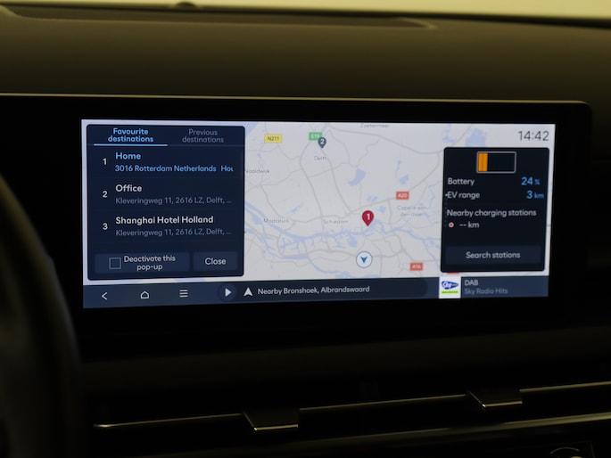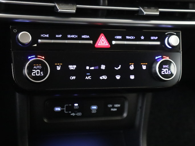 Dankzij het digitale dashboard lees je alle benodigde info gemakkelijk en overzichtelijk af. Parkeer en kijk niet om! De achteruitrijcamera doet dat voor je. Met adaptive cruise control houdt de auto zelfstandig afstand tot jouw voorligger. Een veiligheidsverhogende optie waarmee je comfortabel onderweg bent. Kop aan kont langzaam rijden: dan is afstand houden soms lastig. De file assistent helpt en zorgt automatisch voor veilige ruimte tot de voorligger. Ook als die tot stilstand komt. Ingebouwde spraakbediening maakt het mogelijk om de auto te bedienen zonder dat jouw aandacht wordt afgeleid. Met connected drive services, premium audiosysteem, navigatiesysteem, automatische airconditioning, schakelpaddles aan het stuur en draadloos opladen is deze Hyundai helemaal compleet.