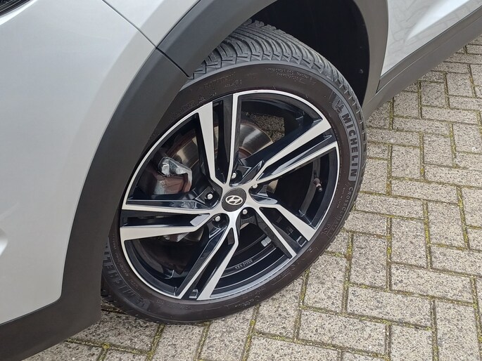Zoals u mag verwachten van deze Hyundai Tucson is hij uitgerust met een reeks aan actieve veiligheidssystemen. Het Lane-keeping systeem registreert permanent of u binnen de lijnen van de rijstrook blijft; dwaalt u onbedoeld af, dan waarschuwt het systeem en corrigeert de koers. De Brake Assist haalt het maximum uit de remkracht van deze Hyundai Tucson als zich een noodsituatie voordoet. Bovenop deze veiligheidsfeatures heeft deze Hyundai bovendien hill hold functie en bandenspanningcontrolesysteem.