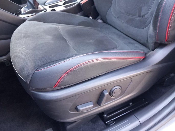 - Stoelbekleding, suède/lederlook met rode stiksels, N Line-design