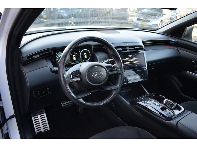 Natuurlijk brengt het digitale dashboard alle ritinformatie perfect in beeld. Maar ook communicatie, navigatie en tal van andere functies zijn permanent te volgen. De vier camera's genereren samen een 360 graden beeld rond de auto, zodat u een volledig overzicht hebt van wat er rondom uw auto gebeurt. Met adaptive cruise control houdt deze auto automatisch afstand tot uw voorligger. Rijden-stilstaan, rijden-stilstaan. Niks is irritanter en vermoeiender dan filerijden. Daar heeft deze Hyundai Tucson een oplossing voor: de file assistent, die met radarmeting permanent het tempo aanpast op de voorligger. Zelfs als die stopt. In deze auto kunt u de belangrijkste functies bedienen met uw stem. Met connected drive services, premium audiosysteem, full map navigatiesysteem, kruisend verkeer detectie, automatische airconditioning en draadloos opladen is deze auto helemaal compleet.
