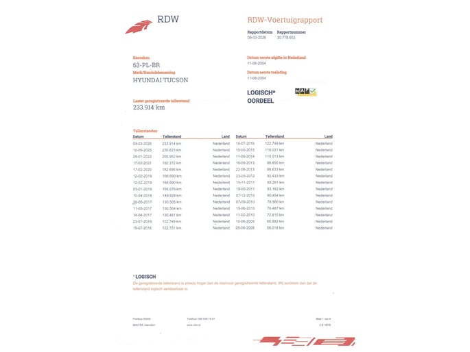 Kilometerstand gecontroleerd
