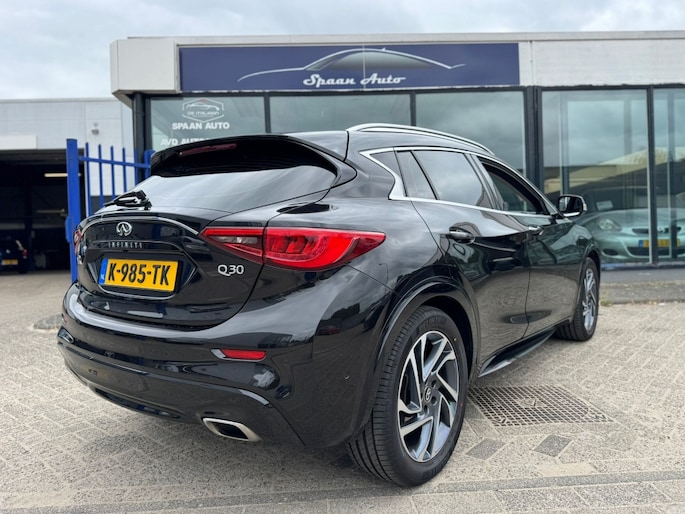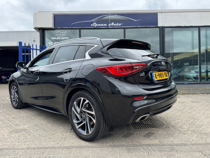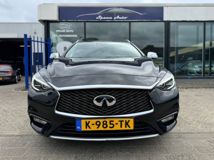 De 360 graden camera biedt een beter zicht bij slechte weersomstandigheden, waardoor u beter kan anticiperen op mogelijke gevaren. Rijplezier en luisterplezier gaan hand in hand dankzij het high performance audiosysteem. Automatische airconditioning regelt volautomatisch de temperatuur. U kiest de gewenste temperatuur en het systeem doet de rest. Liever gepiep dan gekraak? Dan zult u blij zijn met de aanwezige parkeersensoren! Het drukke verkeer eist onderweg al uw aandacht op. Daarom is het goed dat deze Infiniti is voorzien van diverse systemen die u assisteren tijdens de rit. Een automatisch inschakelbare verlichting neemt het waar als het donker wordt of gaat schemeren, en schakelt dan automatisch de verlichting in. Op dezelfde manier "ziet" de regensensor de eerste spatjes regen en schakelt dan de ruitenwissers in, en als het harder gaat regenen zet hij de ruitenwissers ook in een snellere stand. Met dashboard met spraakbediening, navigatiesysteem, sportstuur met schakelpaddels, DAB ontvangst, cruise control en keyless entry is deze Infiniti helemaal compleet.
