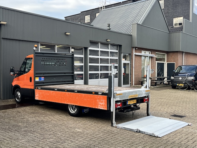 Een zeer nette Iveco Daily 35C14 136PK met Laadklep 500kg Trekhaak 3500kg trekgewicht Airco 2-Persoons Open laadbak Pick-up P-up Bakwagen Telefoonverbinding 1e eigenaar Euro 6 Bpm vrij !!!