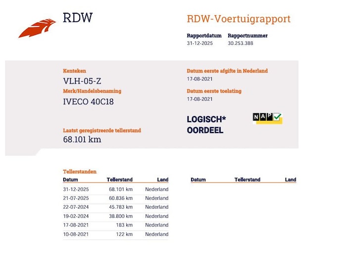 Kilometerstand gecontroleerd