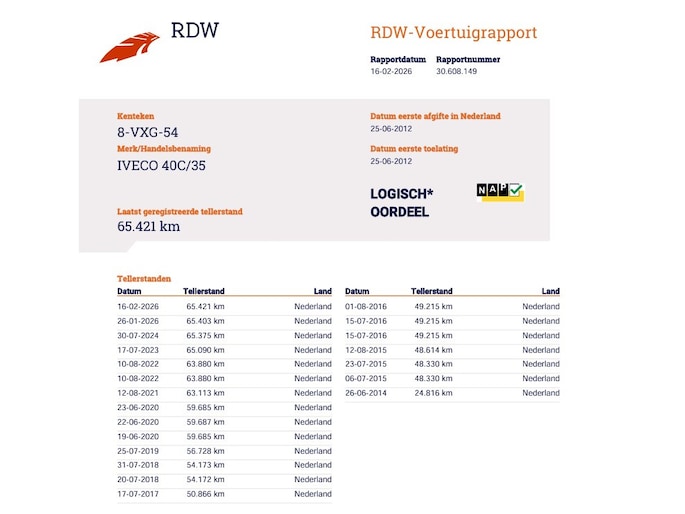 Kilometerstand gecontroleerd