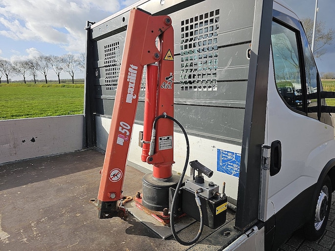 Configuratie: 4x2, Eigen gewicht: 2435 kg, Totaalgewicht: 3500 kg, Trekhaak, Soort cabine: enkele cabine, Cruise control, Airconditioning, Aantal airbags: 1, Standkachel, Parkeerhulp: Geen, Elektrische ramen, Elektrische spiegels, Radio/cassette, Kleur: Wit, Onderhoudsboekje, Verwarmde spiegels, Soort lampen: Halogeen, Climatecontrol, Stoelverwarming, Bluetooth, Zwaailichten, Motorvermogen: 100 Kw (134 Hp), Brandstof: diesel, Euro: 6, Distributie type: Distributieriem, Soort versnellingsbak: Automaat, Stuurbekrachtiging, ABS (Anti Blokkeer Systeem), ASR (Anti Slip Regeling), Start accu, Opbouw model: L4H1 – Extra lange wielbasis, laag dak, Achteropstap, Imperiaal: Geen, Achtersluiting: achterklep, Centrale vergrendeling, Zitplaatsen: 3, Stoelopstelling: 1+2, Stoelbekleding: stof, Stoel verstelling: Handmatig, Kraan, Kraan merk: Maxilift 50, Bouwjaar kraan: 2020, Positie bediening: zijbediening rechts, Positie kraan: achter de cabine, Mech. uitschuifbaar: 3 keer, Extra hydr. Aansl.: geen, Lasthaak, lange open laadbak, airco, LED, trekhaak, stoelverw., cruise, 97 dkm. Euro6!, Banden soort: Winterbanden