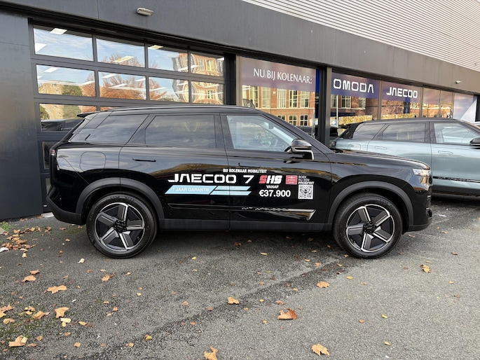 Ervaar de geheel nieuwe Jaecoo 7 SHS bij Kolenaar Mobiliteit in Enschede! Deze plug-in hybride SUV beschikt over 347pk en een elektrisch bereik tot wel 90 kilometer, gecombineerd heeft de Jaecoo een bereik van 1200 kilometer! De Jaecoo 7 SHS komt in twee uitvoeringen, de Select of Exclusive. Standaard is de Jaecoo al erg compleet uitgerust, dit betreft de nog completere Exclusive! Zo beschikt de Jaecoo over 19 inch lichtmetalen velgen, een glazen panoramadak, adaptieve LED-koplampen, een kunstlederen interieur, elektrisch verstelbare voorstoelen, stoelverwarming en -ventilatie voorin, een verwarmbaar stuur, adaptieve cruise control, automatische airconditioning, Apple CarPlay en Android Auto en nog veel meer!