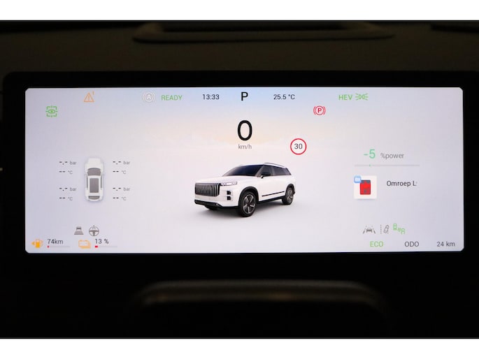 De eendrachtige samenwerking van de benzinemotor en de elektromotor geeft deze Jaecoo 7 zijn geweldige rijkwaliteiten. Dit is een nieuwe auto, hij is nu direct leverbaar. Op zelfs de koudste ochtend biedt de stoelverwarming een heerlijk welkom. Een handige voorziening op deze auto is de elektrische achterklep die u op afstand kunt openen. Het glazen panoramadak biedt u een breed zicht op de omgeving. Comfortabel houvast krijgt u van het verwarmd stuurwiel. Bij de zeer complete uitrusting van deze auto behoren ook 19 inch lichtmetalen velgen, LED koplampen, geluidsisolerende ramen, in delen neerklapbare achterbank, LED-achterlichten en verwarmde ruitensproeiers.