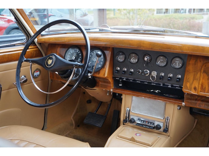 Jaguar 340 (1968), een prachtig exemplaar in mint-conditie en met een lage kilometerstand van slechts 64.000 km. Deze Jaguar is uitgerust met de legendarische 6-cilinder lijnmotor, die zorgt voor een uitstekende combinatie van prestaties en rijcomfort. De auto is verder voorzien van de betere Borg Warner automaat, wat zorgt voor een soepele rijervaring.