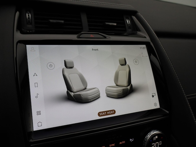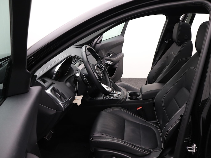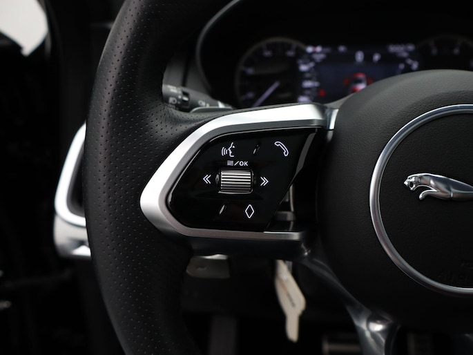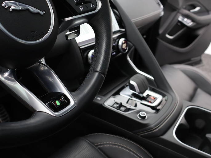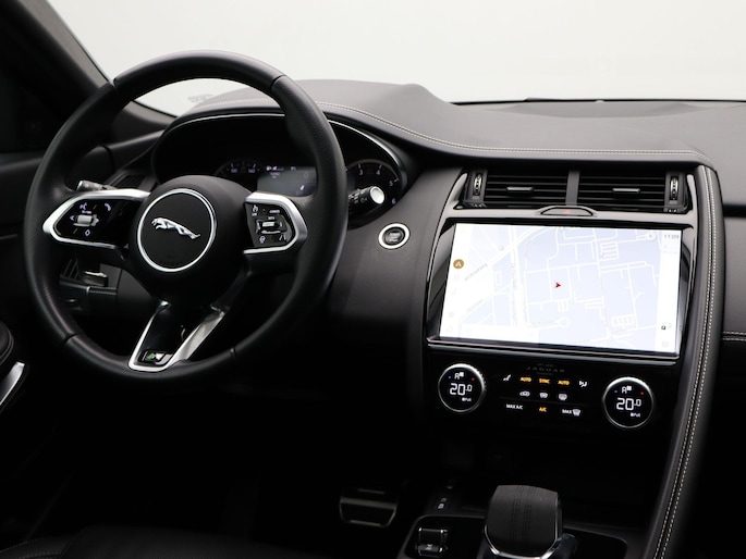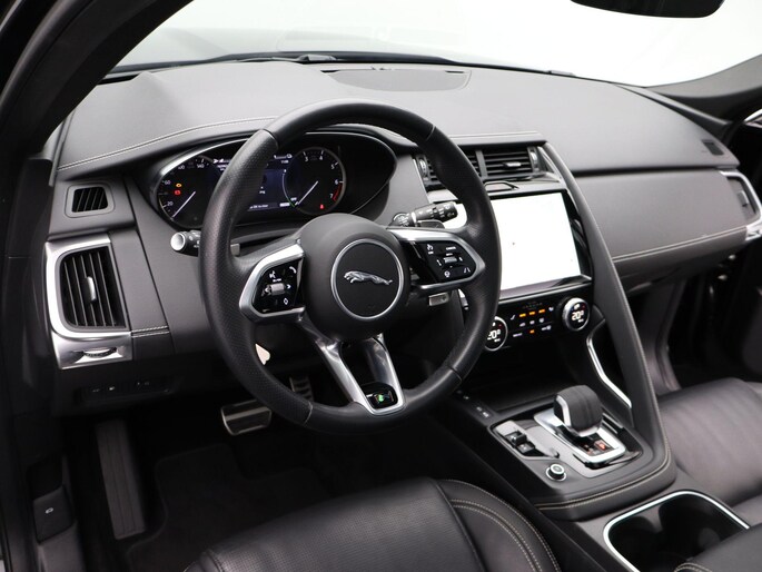 Soepel rijgedrag, een krachtige acceleratie en een laag brandstofverbruik, de hybride Jaguar E-PACE is een innovatieve auto. Kiezen tussen benzine of elektrisch hoeft bij deze Jaguar E-PACE niet. De hybride motor schakelt gemakkelijk over als u dat wilt. Altijd al een voorkeur voor een lederen interieur gehad? Deze Jaguar E-PACE heeft het! Rijcomfort wordt naar een hoger niveau getild in deze auto, met inbegrip van stoelverwarming, een verwarmbare achterbank en een verwarmbaar stuur. De sportstoelen houden u en uw bijrijder goed op z'n plek tijdens het accelereren en bij het nemen van scherpe bochten. Met een druk op de knop gaat de elektrische achterklep open. Onderweg heeft u extra veel te zien dankzij het glazen panoramadak. Tot de voorzieningen van deze auto behoren LED koplampen, dakspoiler, extra getint glas, in delen neerklapbare achterbank, LED-achterlichten en verwarmde ruitensproeiers.