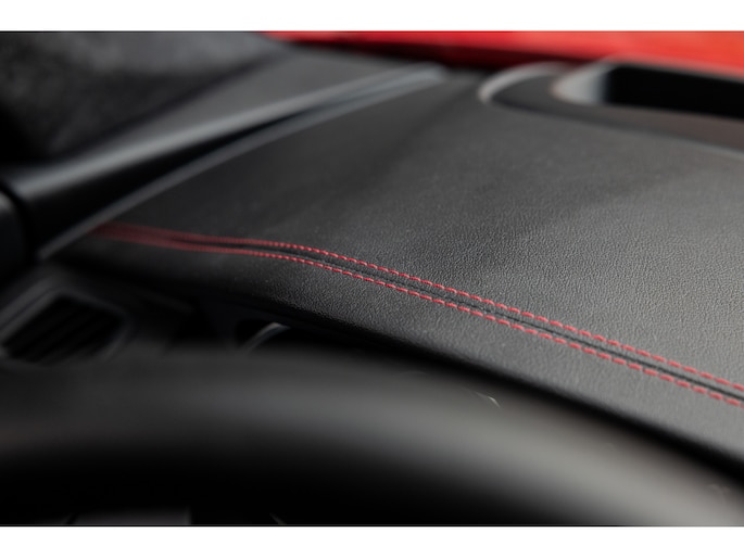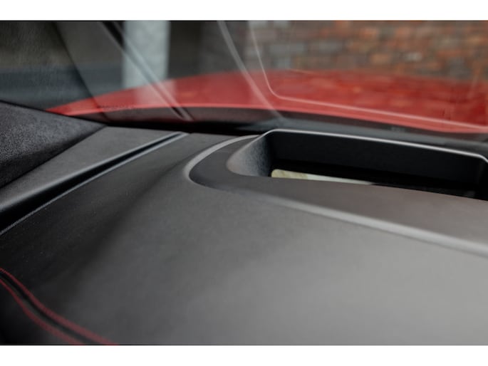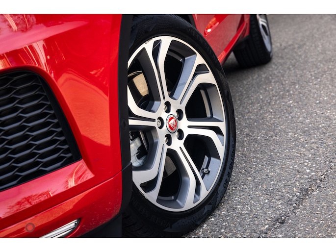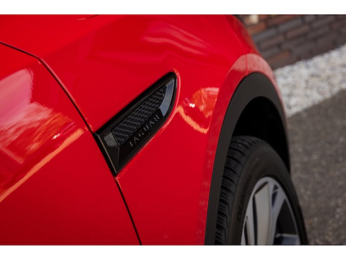 Buiten deze unieke punten is de uitvoering ook perfect. Mits je uiteraard van de bijzondere kleurstelling houdt. Persoonlijk heeft hij ons hart gestolen en vinden we dit een perfecte samenstelling. Modern, stoer, eigenwijs, maar zeker sportief en zelfs chique. De eerste en enige eigenaar koos voor de speciale lak – Caldera Red – gecombineerd met het Black Pack, het zwarte glazen panoramadak en de unieke gepolijste 20” Jaguar Style 6014 velgen.