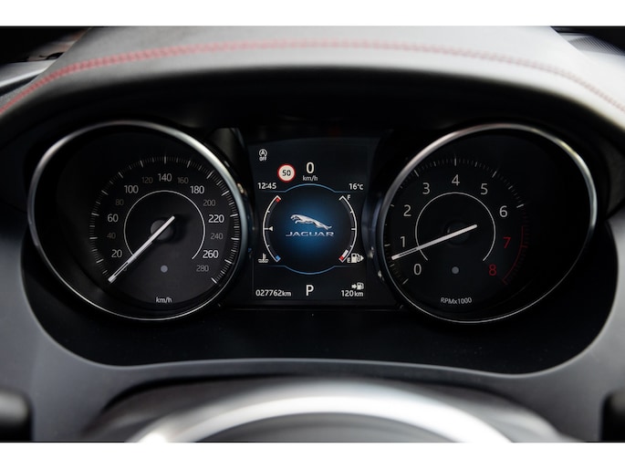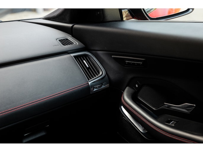 | Lage kilometerstand | Speciale lak – Caldera Red | R-Dynamic | LED koplampen | Head-up display | 18-voudig elektrische sportzetels | Lederen bekleding Ebony + rode stiksels | Memorystanden | Stoelverwarming | Alcantara hemelbekleding zwart | Panoramadak | Merdian audiosysteem | Camerasysteem | Automatisch parkeren | Key-less | Elektrische kofferklep | 20” Originele Jaguar velgen Style 6014 | Ambient sfeerverlichting | Apple CarPlay | Andorid Auto | Dubbele uitlaat | Origineel Nederlands | 1 eigenaar | Volledig dealeronderhouden | 2018 | 27.762 km | EUR 34.900 |
