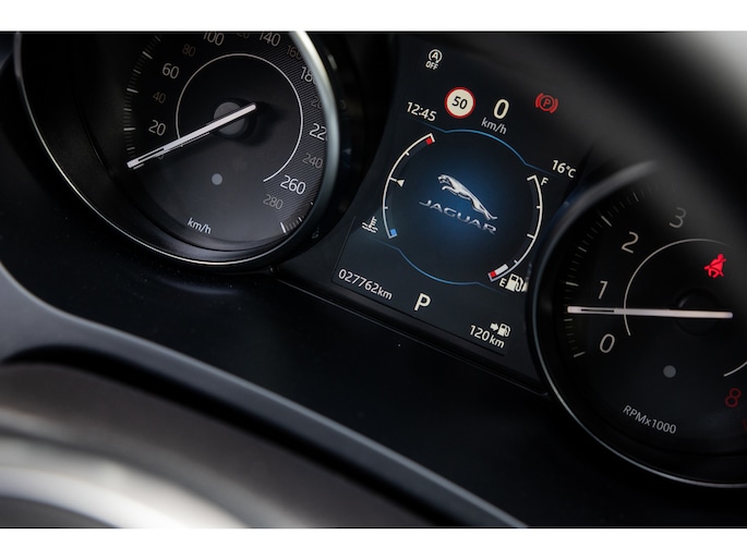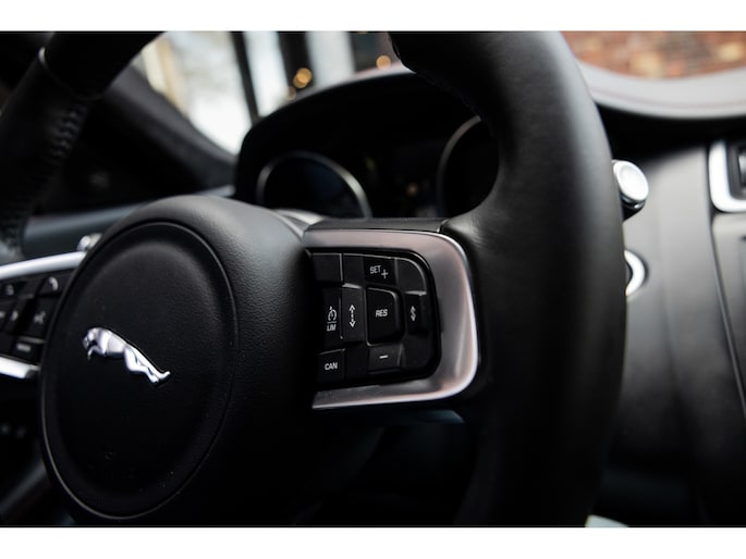 Qua luxe is de Jaguar rijkelijk bedeeld. Zo voorziet het multimediasysteem in eigen navigatie, bluetooth telefonie en audiostreaming, maar ook Apple CarPlay en Android Auto. Op het grote scherm wordt tevens het beeld van de achteruitrijcamera weergegeven. Daarnaast beschikt de Jag over het maximaal aantal parkeersensoren en biedt daarmee de mogelijkheid tot zelfstandig in- en uitparkeren. Het Meridian audiosysteem biedt fantastische audiobeleving. Andere gave features zijn adaptieve cruise control, lane assist, dodehoek detectie en verkeerbordherkenning. Fijne optie is het head-up display waarbij belangrijke informatie op de voorruit wordt geprojecteerd. Fraai is de Ambient sfeerverlichting. Uiteraard werkt alles key-less en is de achterklep elektrisch te openen en te sluiten.