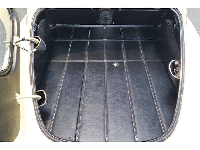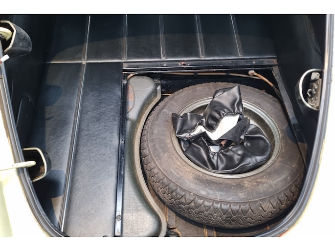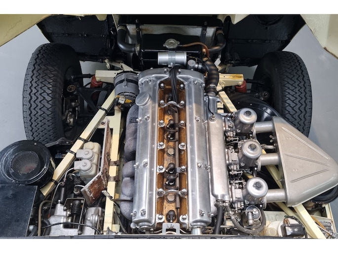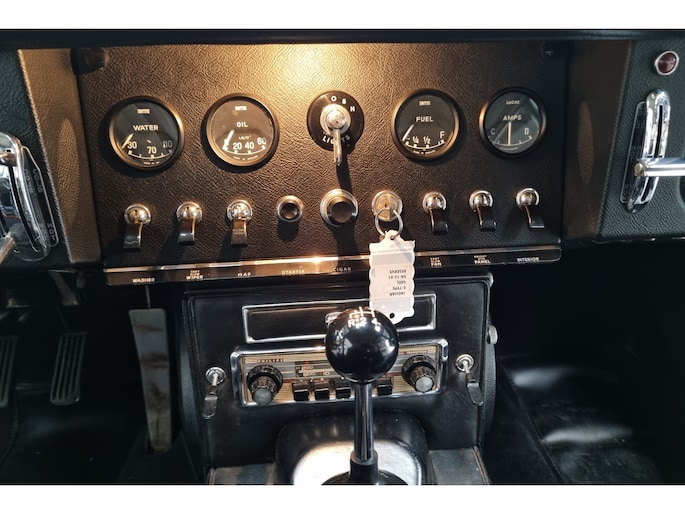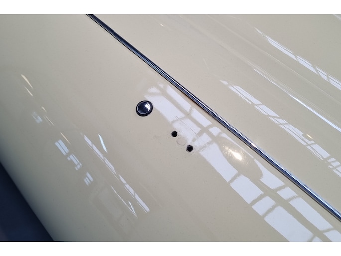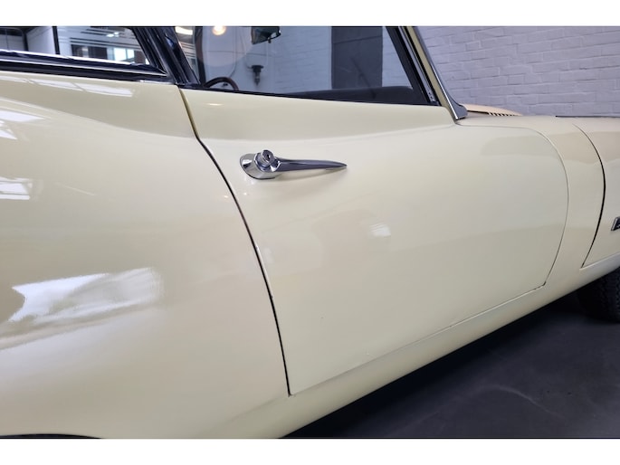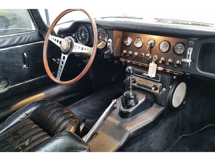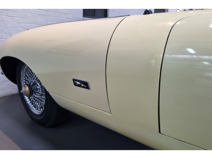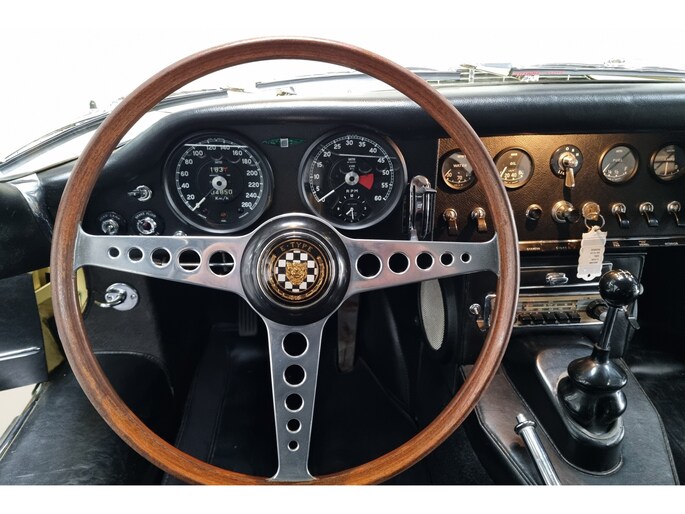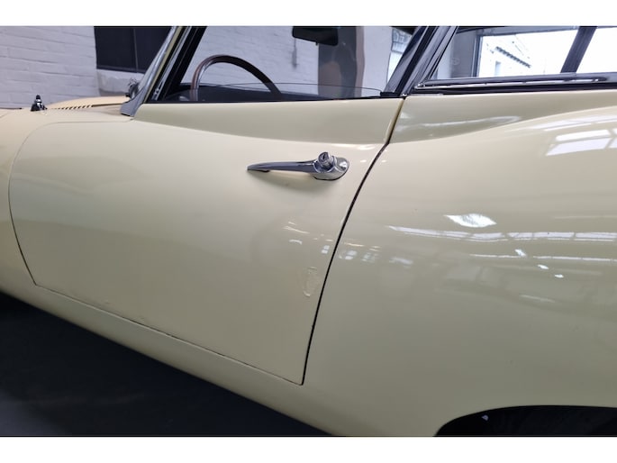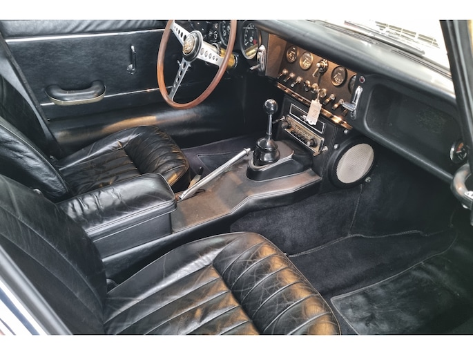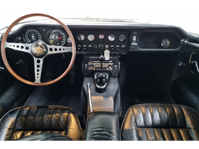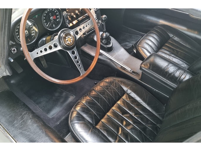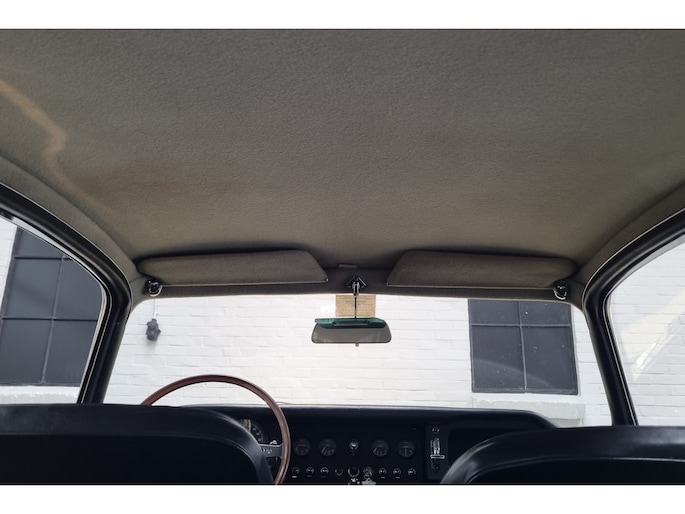 Wat deze E-Type zo bijzonder maakt, laat zich niet vangen in specificaties alleen, maar openbaart zich in beleving. Het patina is prachtig en volledig in lijn met zijn leeftijd; geen kunstmatige veroudering, maar een eerlijk en doorleefd karakter dat alleen ontstaat door tijd. De lak draagt subtiele gebruikssporen en enkele kleine beschadigingen die niet afleiden, maar juist het verhaal van de auto onderstrepen. Het zijn de sporen van een leven dat geleefd is, en precies dat maakt deze auto authentiek. De passingen zijn opvallend mooi en consistent, een zeldzame kwaliteit die bevestigt dat deze auto nooit uit elkaar is geweest zoals zoveel andere exemplaren. Op de spatborden bevinden zich nog de originele gaten voor de spiegels, waarbij de bijbehorende spiegels uiteraard aanwezig zijn, een detail dat de originaliteit verder versterkt en getuigt van een onaangetast verleden.