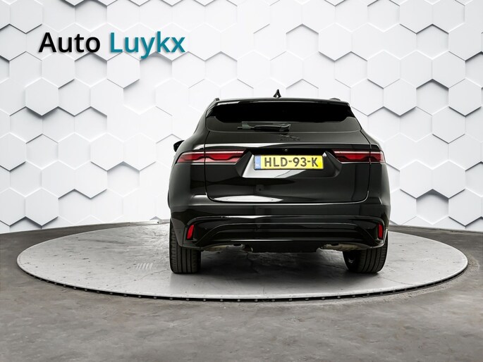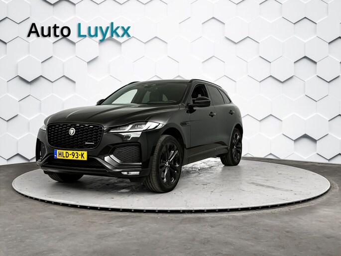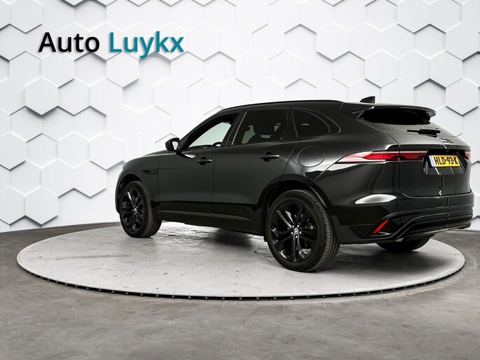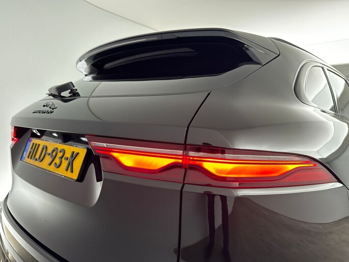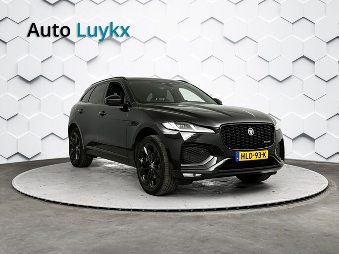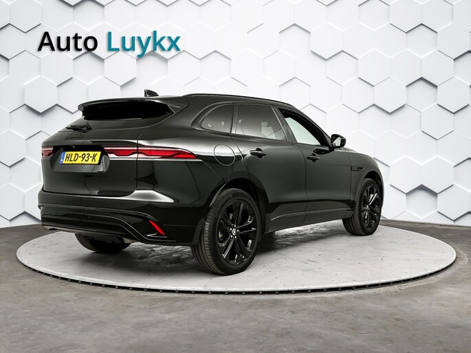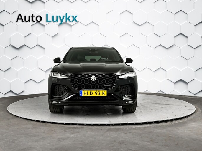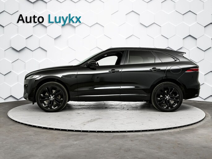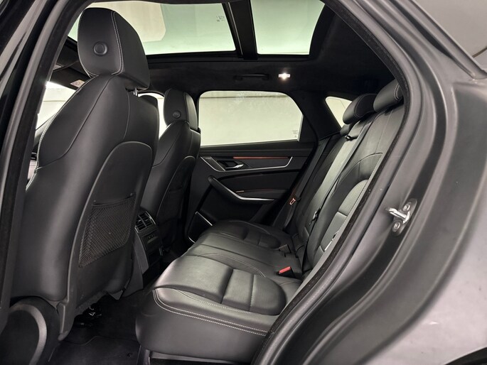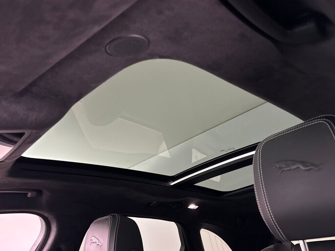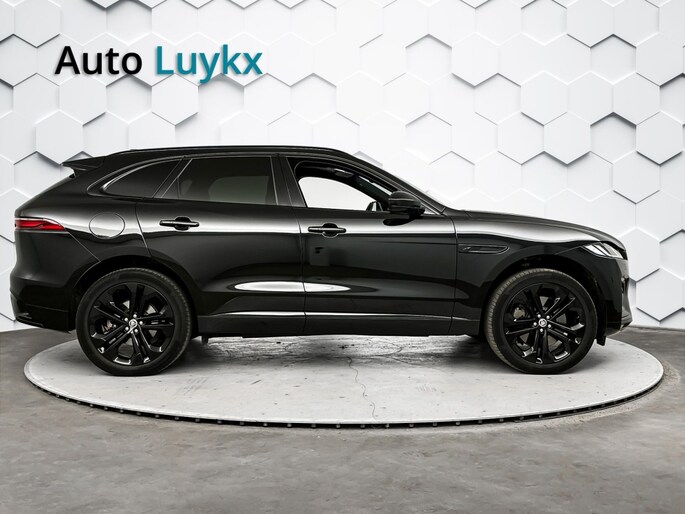 Het stoere zwarte exterieur van deze Jaguar F-PACE wordt geaccentueerd door de lichtmetalen velgen van 21 inch. Daarnaast is deze auto voorzien van metallic lak voor een extra glossy uitstraling.