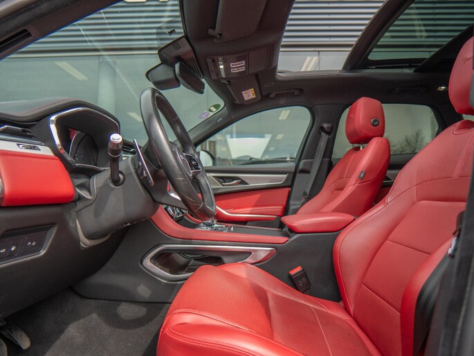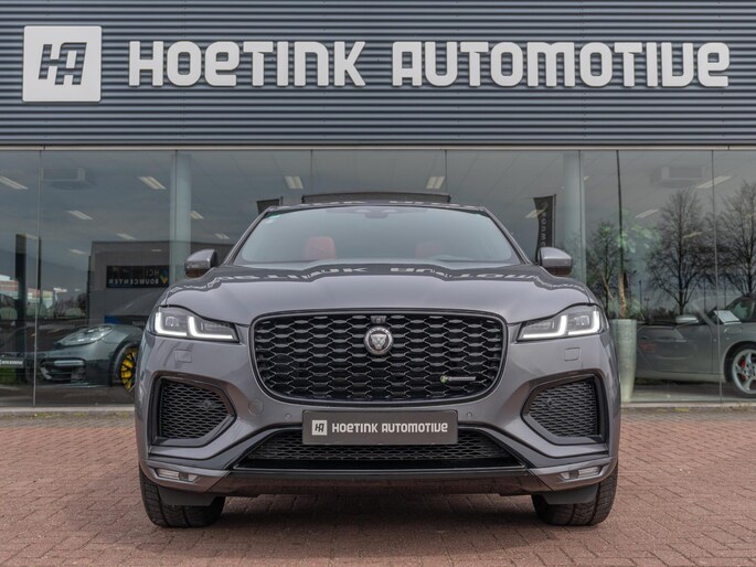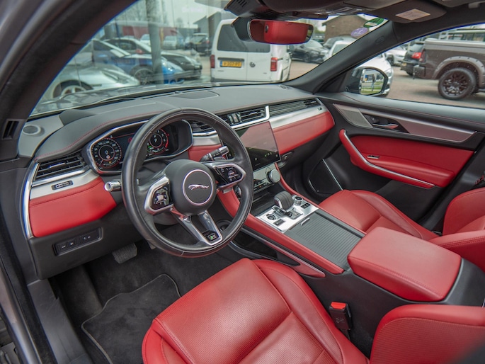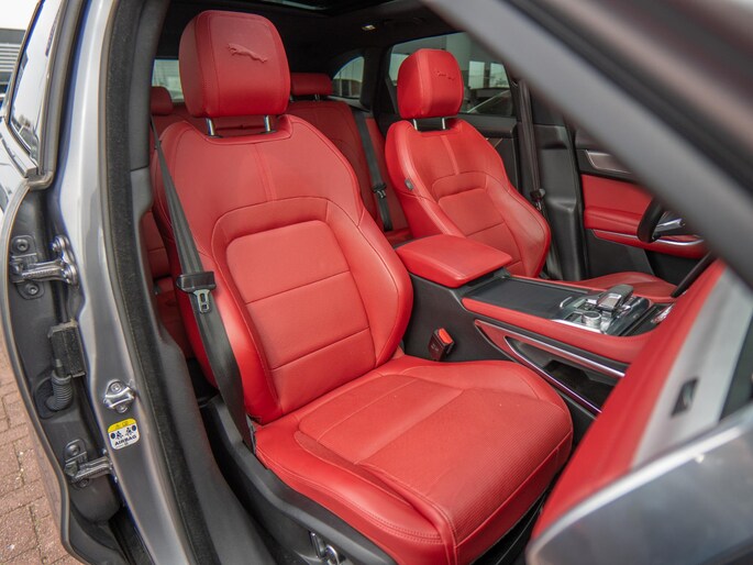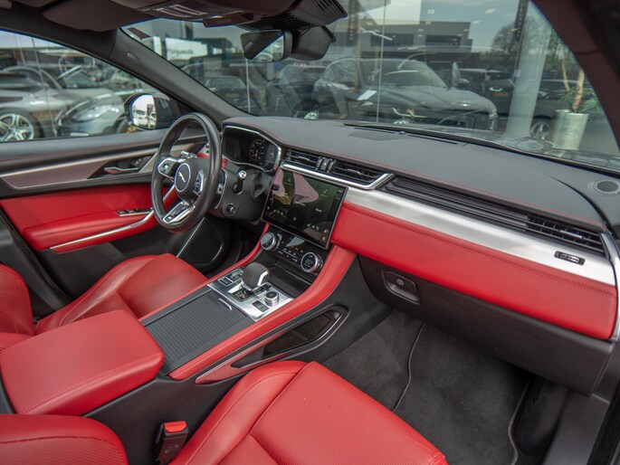 Beautiful Jaguar F-Pace P400e finished in the stylish ‘Eiger Grey’ with a stunning ‘Mars Red’ interior. A superb configuration with the most important options such as: panoramic roof, head-up display, 360° camera and Apple CarPlay & Android Auto.