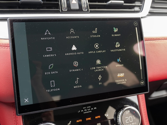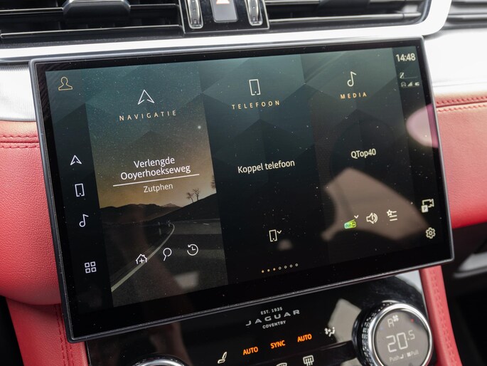 Mooie Jaguar F-Pace P400e uitgevoerd in het stijlvolle ‘Eiger Grey’ met een prachtig ‘Mars Red’ interieur. Een schitterende configuratie met de belangrijkste opties zoals: panoramadak, head-up display, 360° camera en Apple CarPlay & Android Auto.