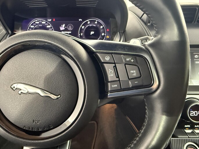 Wie zei daar dat er geen emotie meer in auto's zit? Achter het stuur van deze Jaguar F-TYPE kunt u het nog steeds ervaren, kilometer na kilometer. Het is een auto van het bouwjaar 2020, er staat 76442 kilometer op de teller. In deze auto vindt u een benzinemotor en een automatische transmissie. De lederen bekleding geeft het interieur een rijke en luxe uitstraling. U past de stoelen moeiteloos aan, ze zijn elektrisch in te stellen en hebben bovendien een geheugen. De bagageruimte is toegankelijk via een comfortverhogende elektrische achterklep. Wat een heerlijk ruim gevoel en zoveel licht geeft dat glazen panoramadak! Als het buiten koud wordt, voelt zo'n verwarmd stuurwiel heerlijk aan. Dankzij de matrix LED-verlichting geven de koplampen ook in het donker daglicht. Tot de voorzieningen van deze auto behoren 20 inch lichtmetalen velgen en LED-achterlichten.