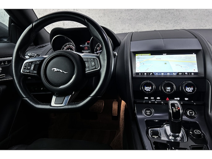 Deze Jaguar F-TYPE staat voor u klaar. Een geweldige, nog jonge occasion die goed is voor veel rijplezier. De zescilinder benzinemotor en de automatische transmissie maken het rijden met deze auto tot een waar feest. Zit u goed? De stoelen zijn eenvoudig instelbaar dankzij de elektrische bediening met geheugen. Met een druk op de knop gaat de elektrische achterklep open. Ook 20 inch lichtmetalen velgen, sportonderstel, getint glas, zwarte hemelbekleding, LED-achterlichten, metallic lak en elektrisch inklapbare buitenspiegels horen tot de voorzieningen op deze auto.