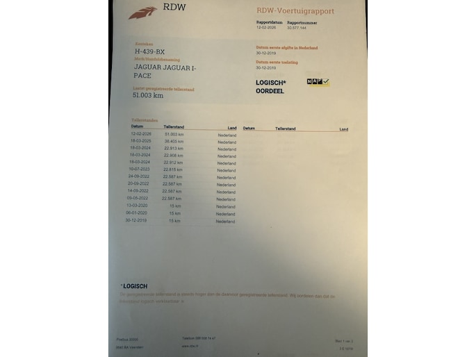 Kilometerstand gecontroleerd