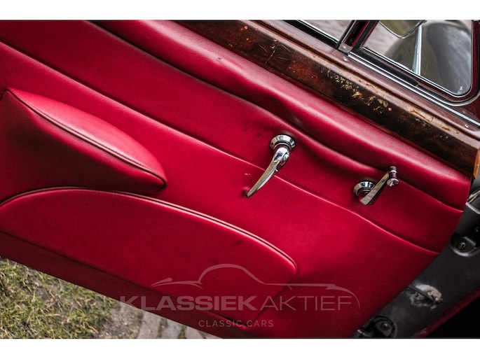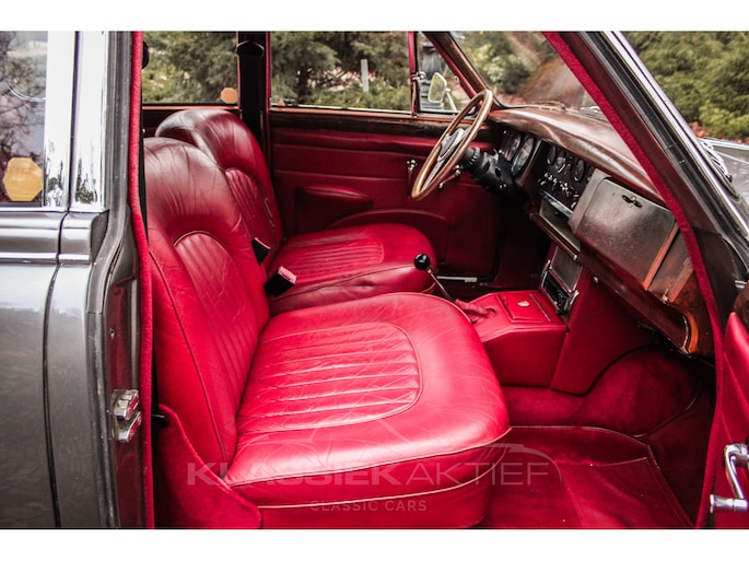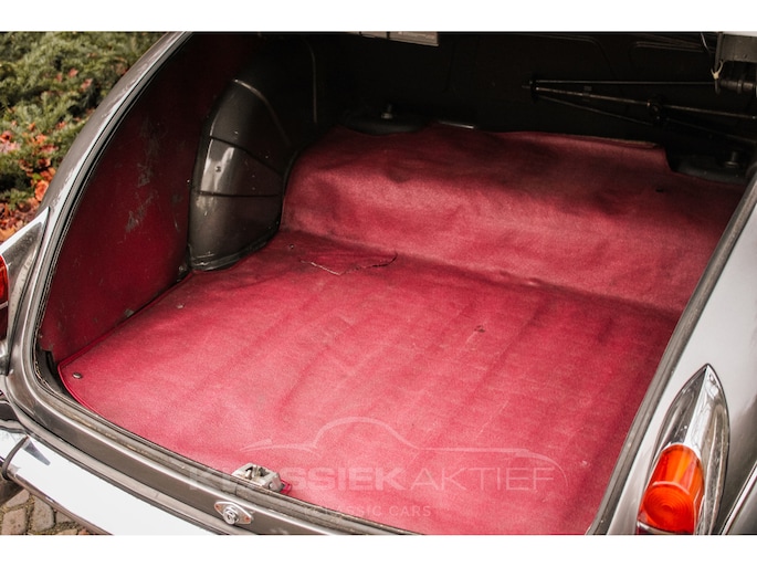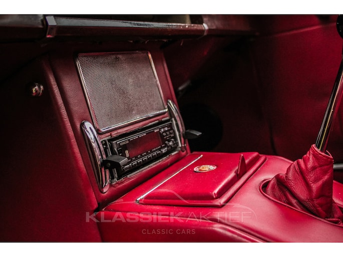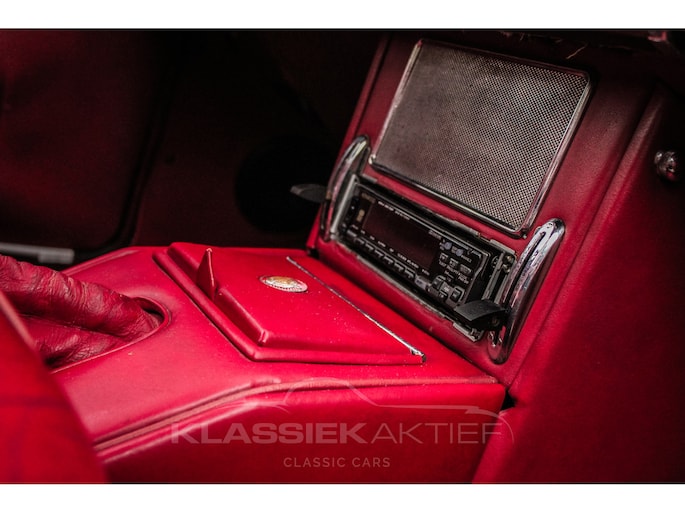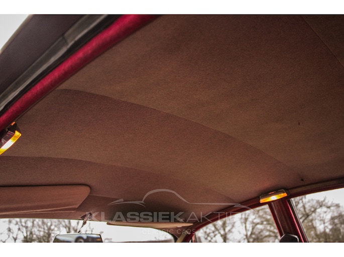 Het roodlederen interieur is nog in uitzonderlijk goede conditie. De stoelen en achterbank zitten niet alleen comfortabel en zijn ook nog in goede staat. Het houtwerk is in redelijke conditie en vertoont patina sporen. De tellers en instrumenten zijn in goede en mooie conditie. De hemelbekleding is nog origineel en in goede conditie.