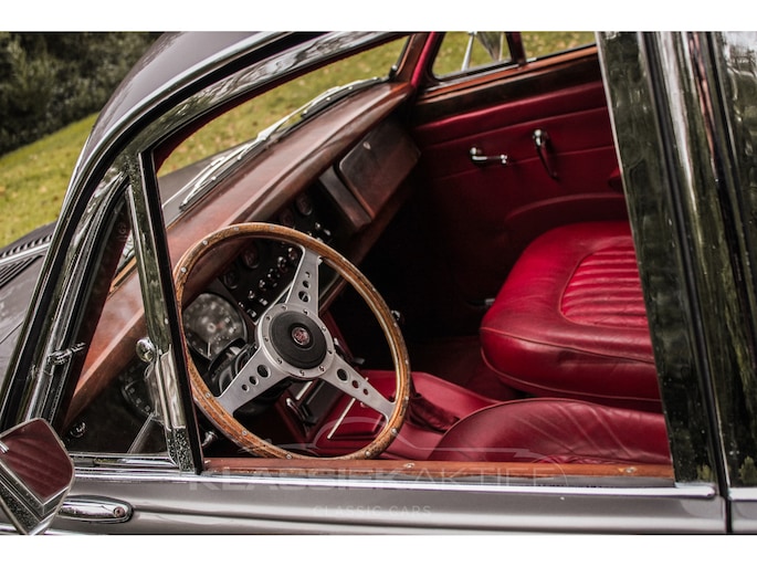 This Jaguar MK2 drives and shifts exceptionally well and has recently undergone a major service (invoice available for over €8,000.00). The brakes feel firm and good, and the steering works well and properly. For optimal cooling, an additional electric cooling fan was installed in the past. The car is also equipped with a DEFA alarm system.
