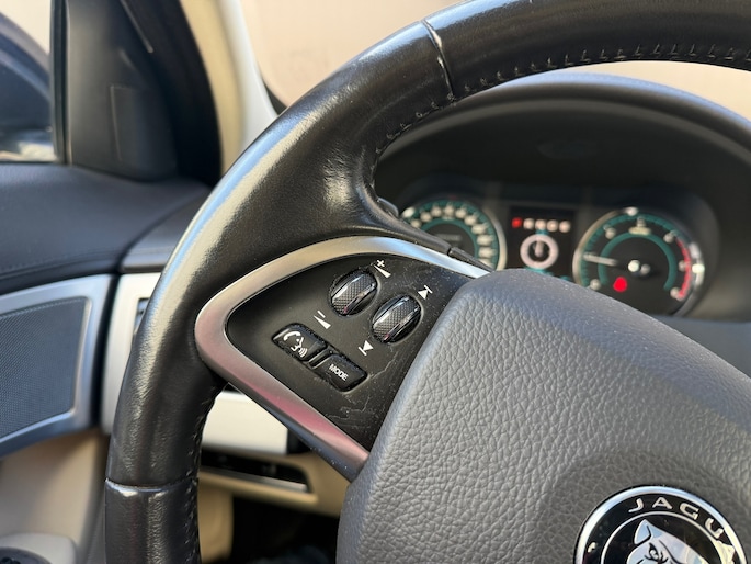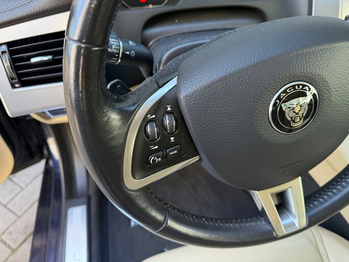 Omdat u nou eenmaal geen ogen in uw achterhoofd heeft, is het altijd lastig om achteruit te rijden zonder brokken te maken. De achteruitrijcamera lost dat probleem op. Muziek luisteren wordt genieten met het high performance audiosysteem. Het spreekt voor zich dat een auto als deze ook van electronic climate control is voorzien. Volume aanpassen, andere radiozender? U bedient het audiosysteem veilig en handig met de functies op het stuur. De DAB-ontvanger zorgt voor een ruime keuze uit digitale radiozenders en een kristalheldere geluidsweergave. De Jaguar is standaard voorzien van: sportstuur met schakelpaddels, regensensor, cruise control, keyless entry en centrale deurvergrendeling met afstandsbediening.