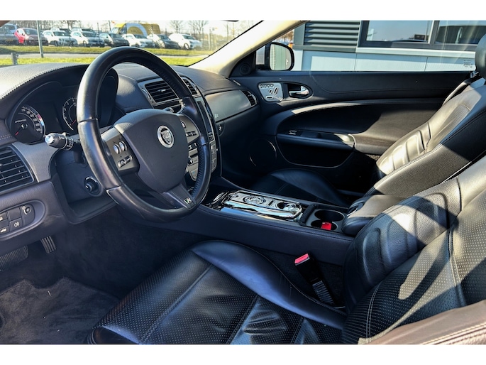 Origineel Nederlandse Jaguar XKR 5.0 V8 Supercharged met slechts 94798km! Deze bijzondere variant van de XK8 is door gebruik van de Supercharger omgetoverd tot XK-R, onder de kap een fantastisch klinkende 5.0 V8 met maar liefst 510pk en prestaties die tot de verbeelding spreken. Uiterlijk is de XK R te herkennen aan 19" lichtmetalen wielen of de optionele 20" wielen zoals bij dit exemplaar, xenon verlichting, de voor Jaguar kenmerkende geweven R grill en een bescheiden achterspoiler. Het exterieur is uitgevoerd in Lunar Grey en het interieur is Brits chique en sportief waarbij de 1e eigenaar heeft gekozen voor tijdloze zwart lederen bekleding, alcantara hemelbekleding en aluminiuminleg. Qua luxe zijn zaken aanwezig die verwacht mogen worden in dit segment zoals navigatie met bluetooth, elektrisch verstelbare voorstoelen met geheugen, stoelverwarming en stoelventilatie, elektrisch verstelbaar stuurwiel, climate control, cruise control, keyless entry, Alpine Premium audio, enz. Bijzondere auto welke in de 5.0 S/C variant en met een lage kilometerstand en schadevrij verleden inmiddels een zeldzaamheid begint te worden, met recht een future classic en daardoor een interiessante investering. Deze XK is inmiddels ook voordelig zakelijk te rijden als youngtimer waarbij slechts 35% bijtelling hoeft te worden voldaan over de dagwaarde. Zeer goed onderhouden Jaguar met complete historie, 2 sleutels, boorddocumentatie en NAP. De prijs voor deze bijzondere Jaguar is rijklaar.