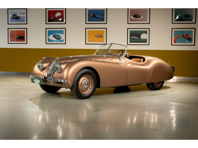 De Jaguar XK120 behoort tot de meest invloedrijke sportwagens uit de naoorlogse periode en vormt een hoeksteen binnen elke serieuze collectie klassieke sportauto’s. Met zijn elegante proporties, opencarrosserie en baanbrekende prestaties zette Jaguar begin jaren vijftig de internationale standaard. Dit exemplaar uit 1952 vertegenwoordigt die geschiedenis in een zorgvuldig samengestelde en correct gespecificeerde uitvoering, met aandacht voor herkomst, documentatie en presentatie.