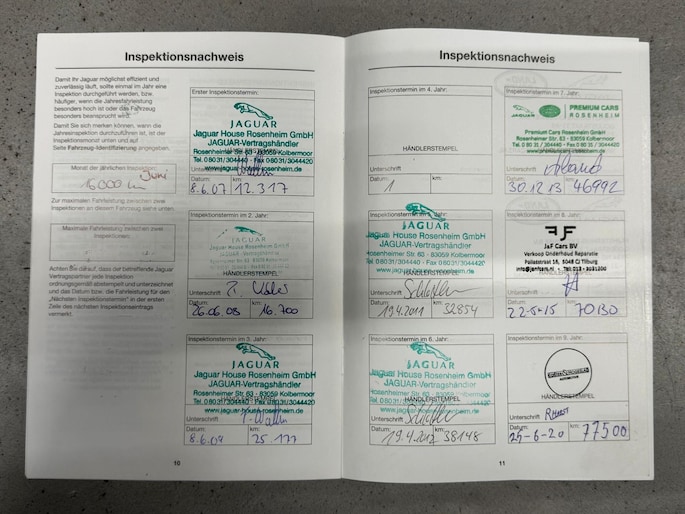 Een van origine Duits geleverd exemplaar. In juni 2006 door Jaguar house Rosenheim GmbH te Kolbermoor geleverd aan de eerste , longterm eigenaar. Ten alle tijden bleef de Xk in onderhoud bij desbetreffende dealer. Uiteindelijk verhuisde de auto kortstondig richting België naar eigenaar nummer twee. Deze meneer liet de auto bij een Jaguar specialist uit Tilburg onderhouden. De auto werd in de periode 2015 - 2020 amper bereden. De Xk kwam later terecht ter verkoop bij een specialist van exclusieve auto's en kreeg in 2020 haar eerste Nederlandse registratie. Onze klant eigenaar nummer drie , een Jaguar liefhebber met passie voor de kleur groen kocht de auto daar aan en heeft de auto hobbymatig ruim "5" jaar gehad en bereden. De laatste eigenaar liet de auto onderhouden bij niemand minder dan Jaguar dealer Munsterhuis te Enschede , hiervan is vanaf aankoop periode tot 2025 service facturatie van present , wat het verhaal mede extra interessant maakt. De laatste servicebeurt heeft nog plaatsgevonden op: 10-06-2025 bij 102256km. De reden van inruil? De gekoesterde droom , aankoop van een groene Jaguar Xkr , bij ons aangekocht. Wij bieden u dit exemplaar geheel rijklaar aan!