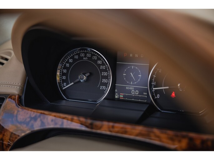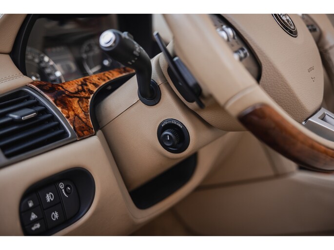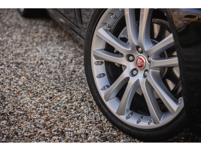 De vroege lentezon brengt de eerste warmte van het jaar. In het zachte licht komt de waanzinnige Jaguar XK Convertible perfect tot zijn recht. De diep zwarte lak gecombineerd met het Sand lederen interieur geeft de Jaguar de uitstraling die je graag ziet bij deze Brit. De 20” originele Jaguar Senta velgen zijn in onze ogen de mooiste velgen die je onder de XK kon bestellen. Prachtig met de bouten in de wielrand. De XK Convertible is op en top Brits. Chique en exclusief, maar de welvende motorkap, de side vents, de brede banden en de twee uitlaatmondingen aan de achterzijde maken ook duidelijk dat de Jaguar een serieuze machine is.
