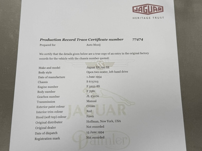 Gebouwd op 1 Juni 1954 en geleverd aan de welbekende importeur Hoffman in New York.