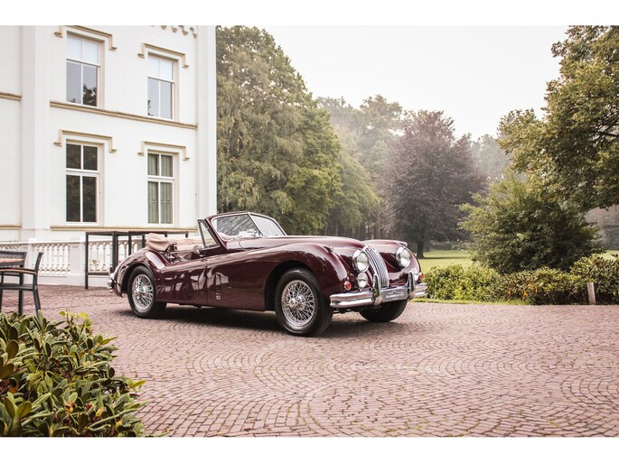 This 1956 Jaguar XK140 was originally delivered to the United States in Old English White. In 1996, the car came to the Netherlands and was subsequently fully restored. This professional, body-off restoration was expertly carried out by Altena Classic Service (extensive invoices are available), and during this restoration, both the engine block and the automatic transmission were completely overhauled. The car was also fitted with power steering. During the restoration, the car was also resprayed in the impressive Regency Red. The interior features the perfectly matching beige. In the years that followed, the car was lovingly and carefully maintained by Jaguar specialist Kolvenbach. As a result, this stylish Jaguar XK140 remains in impressive and sublime condition.