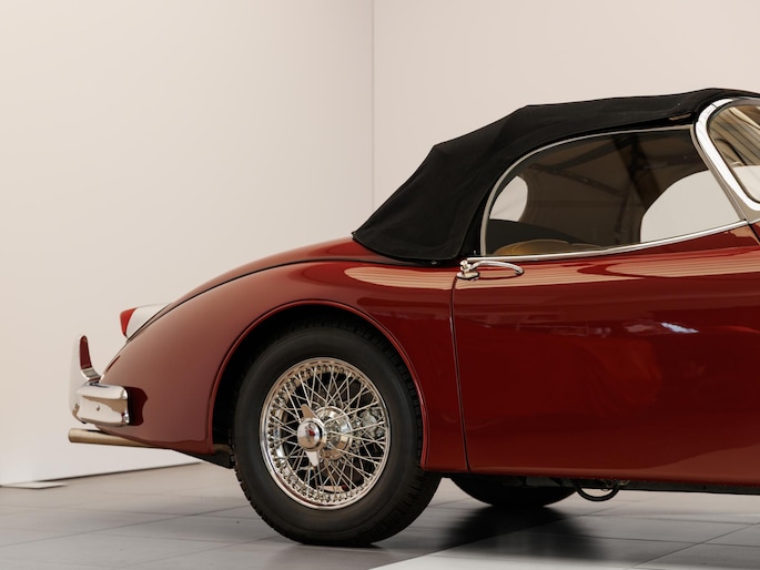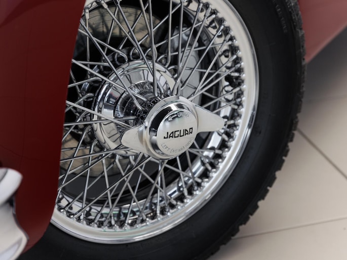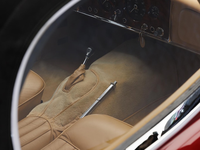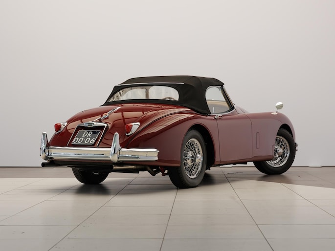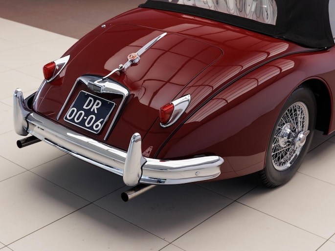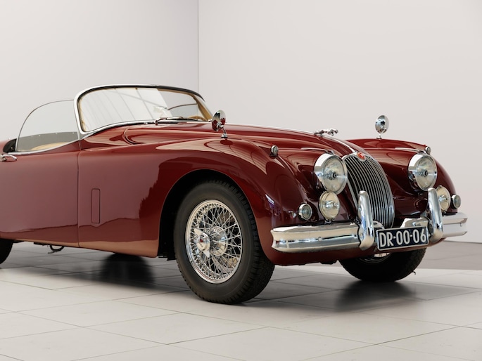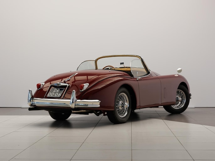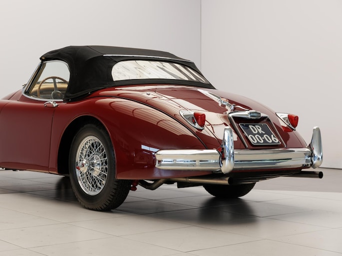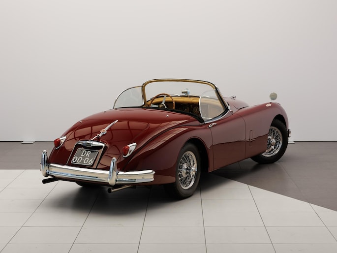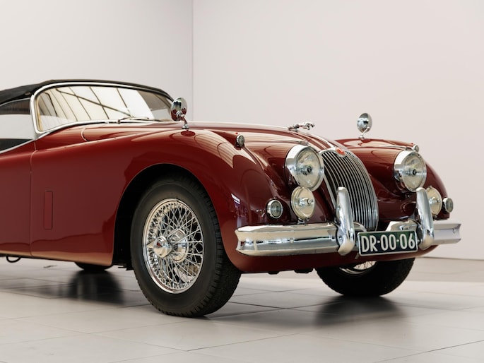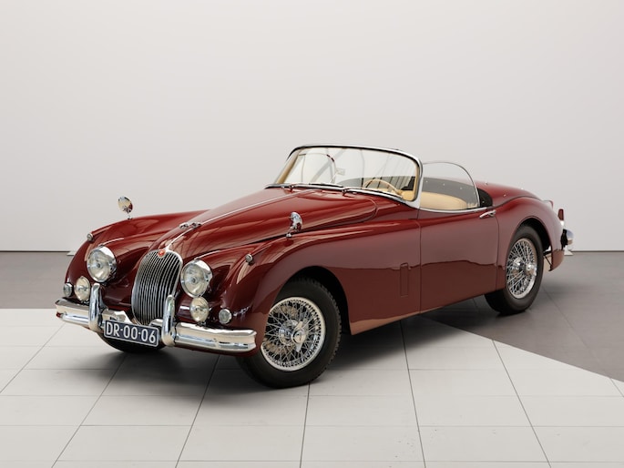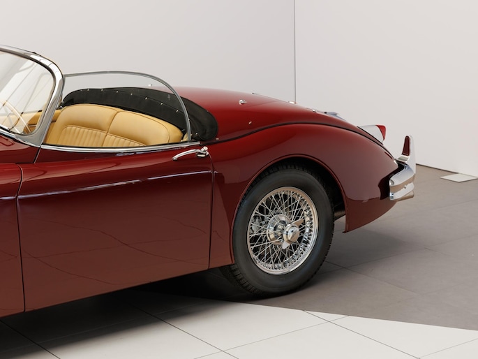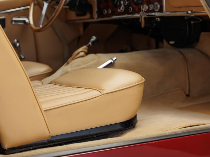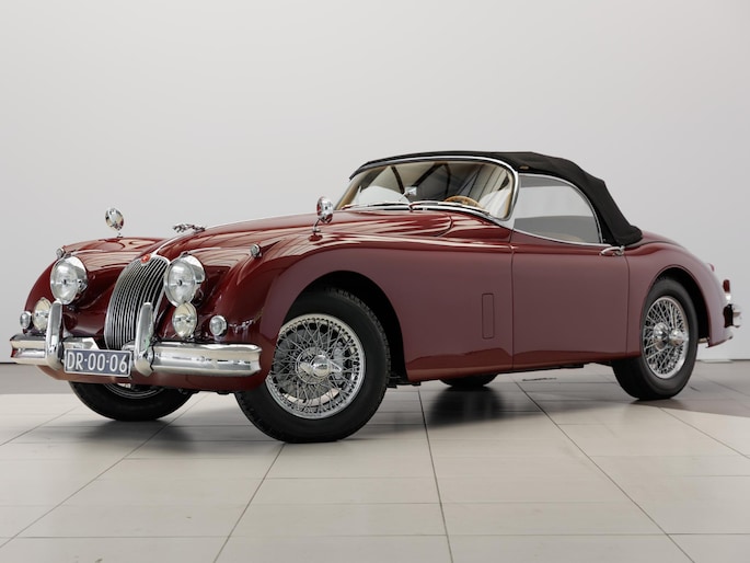 Een uitzonderlijke Jaguar XK150 OTS in absolute topconditie. Deze prachtige open tweezitter is uitgevoerd in Imperial Maroon met een luxueus Biscuit interieur. Niet zoals de auto ooit origineel geleverd is (van origine “cream” met zwart interieur), maar volledig gerestaureerd volgens fabrieksvoorschriften en met originele onderdelen, voor een resultaat dat zowel oogstrelend als authentiek is.