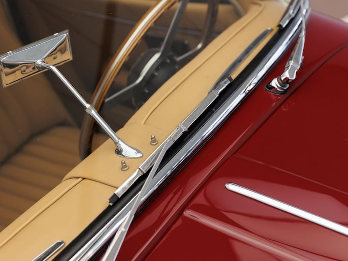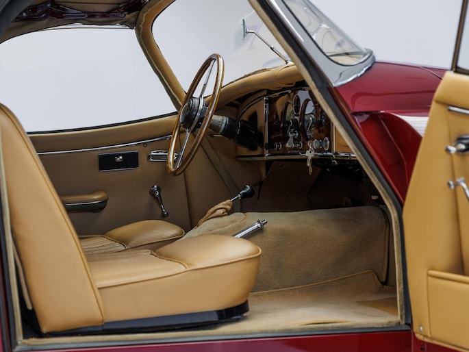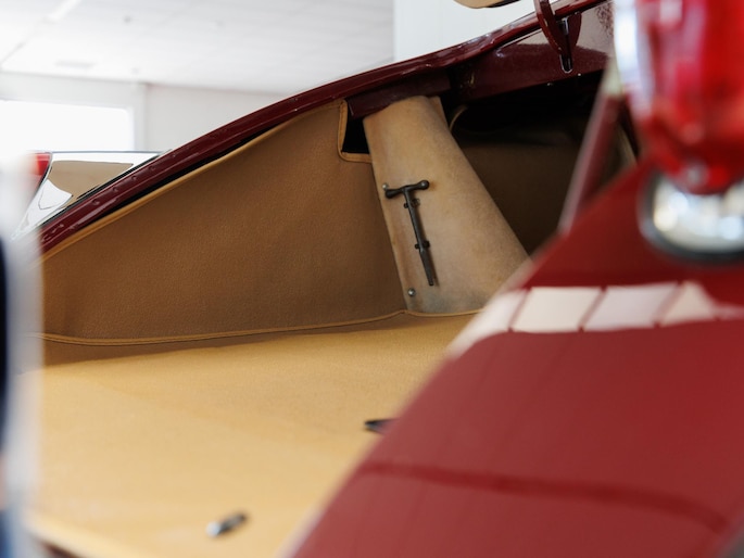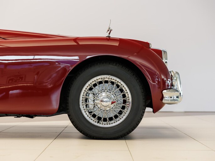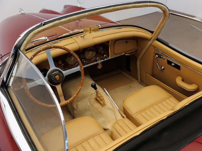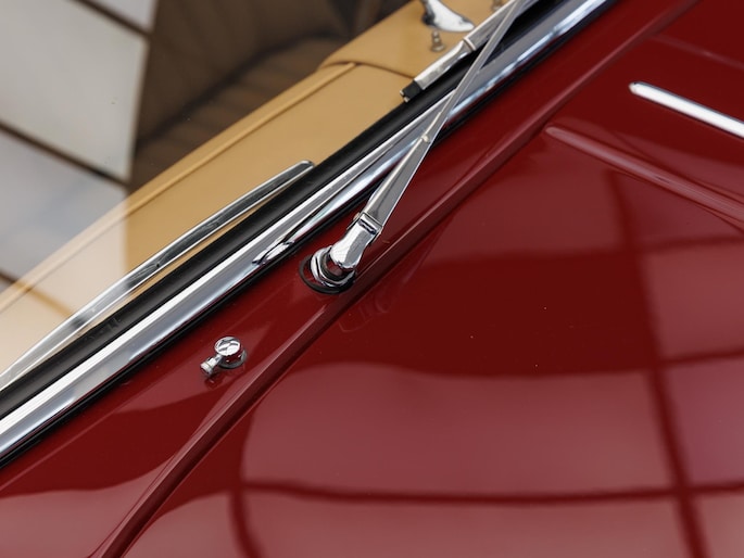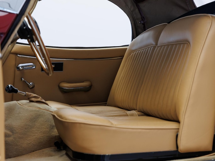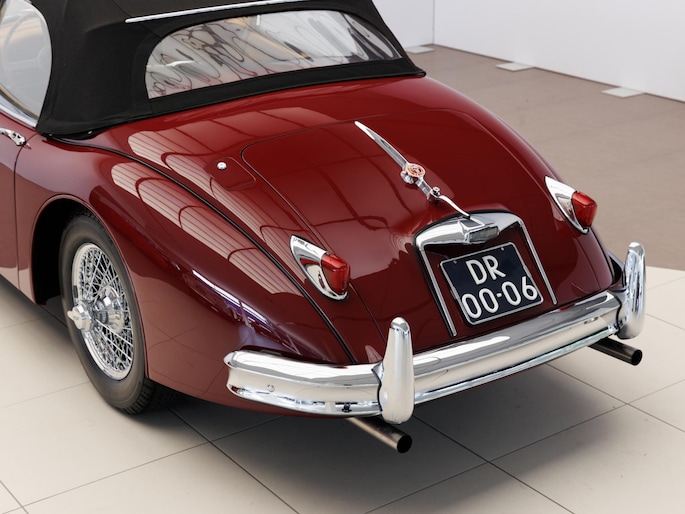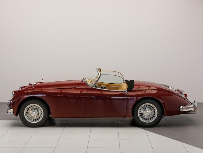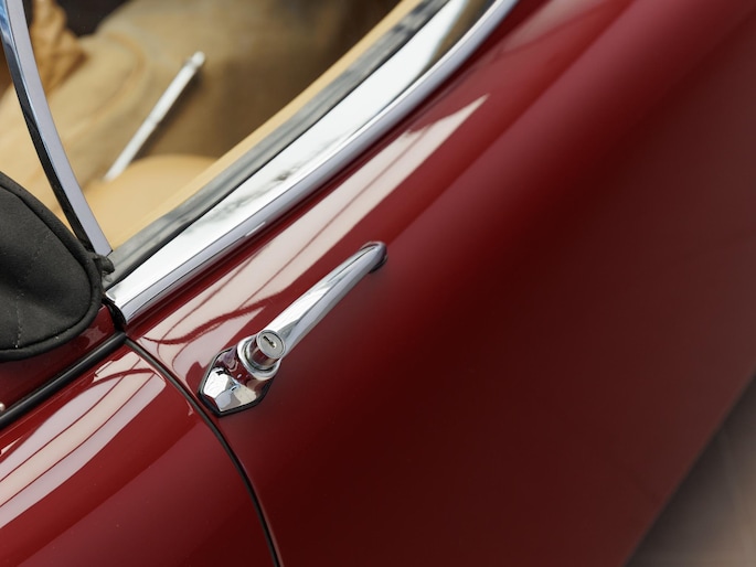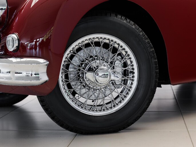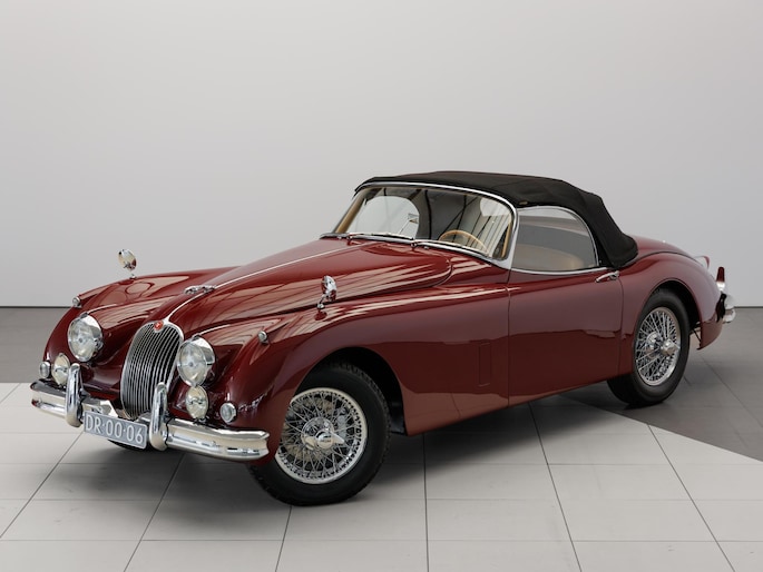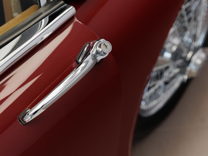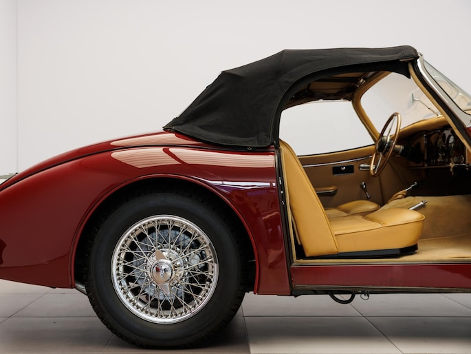 Een uitzonderlijke Jaguar XK150 OTS in absolute topconditie. Deze prachtige open tweezitter is uitgevoerd in Imperial Maroon met een luxueus Biscuit interieur. Niet zoals de auto ooit origineel geleverd is (van origine “cream” met zwart interieur), maar volledig gerestaureerd volgens fabrieksvoorschriften en met originele onderdelen, voor een resultaat dat zowel oogstrelend als authentiek is.