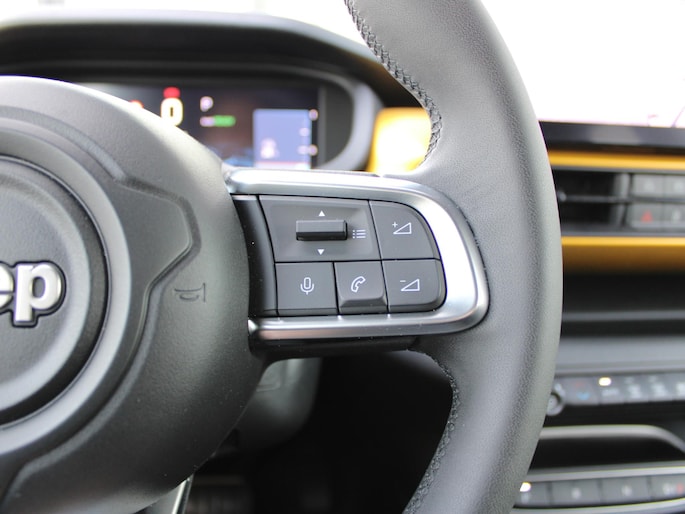 Kijk naar de onvergelijkbare vormgeving. De Jeep Avenger is een elektrische auto die zijn bijzondere karakter niet voor de buitenwereld verbergt. Natuurlijk is de actieradius mede afhankelijk van de weersomstandigheden, maar een volle acculading is over het algemeen voldoende voor de gewone dagelijkse ritten. Het opladen kan gewoon 's nachts, terwijl u slaapt. Ga samen met uw bijrijder lekker zitten in de verwarmbare voorstoelen. Een praktische extra is de elektrisch bedienbare achterklep die opent en sluit met een druk op de knop. Verder is de Jeep uitgerust met: 18 inch lichtmetalen velgen, LED koplampen, extra getint glas, in delen neerklapbare achterbank en LED-achterlichten.