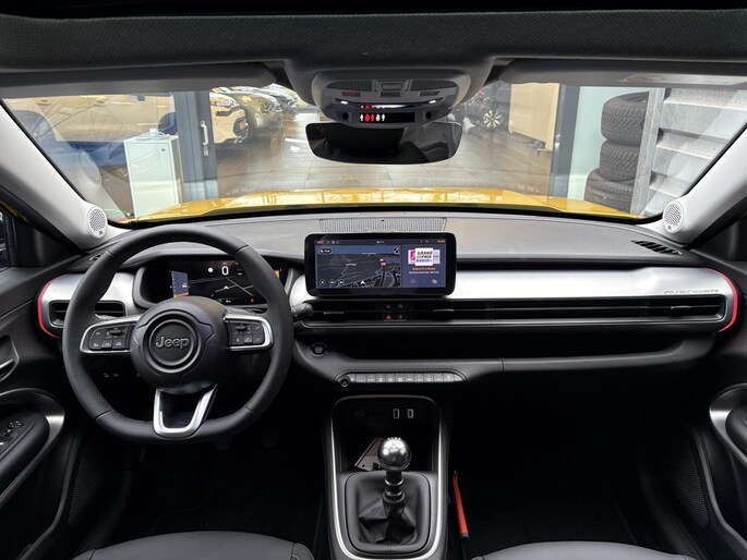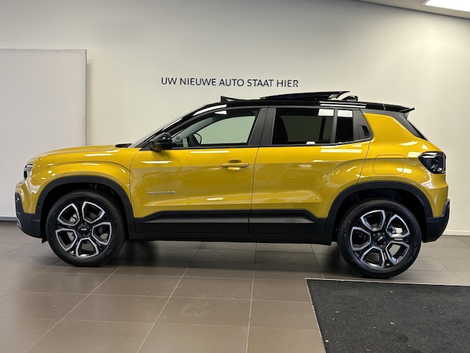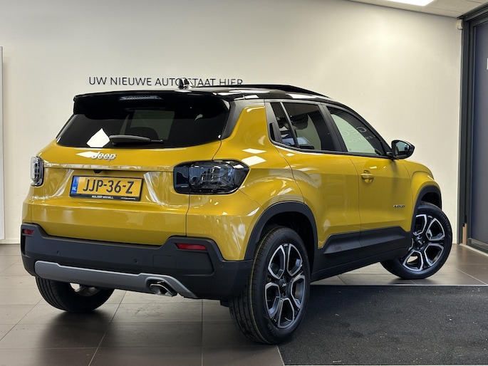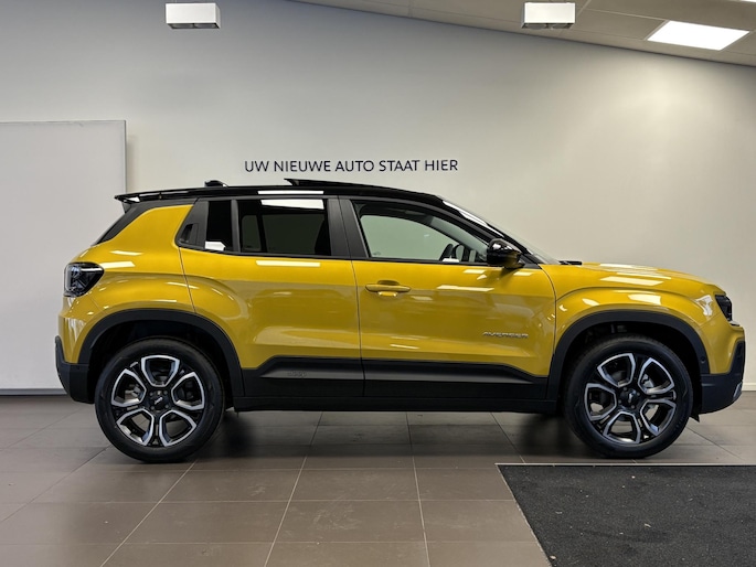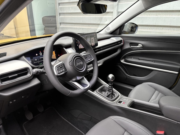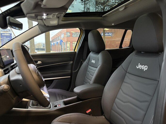 Alle technologie in de Jeep Avenger is er op gericht om uw rit veilig en gemakkelijk te laten verlopen. Dit is een splinternieuwe auto, die nu uit voorraad leverbaar is. De aandrijving van deze Jeep wordt verzorgd door een driecilinder benzinemotor en een handgeschakelde zesversnellingsbak. Van binnen is deze Jeep Avenger mooi uitgevoerd met een classy lederen interieur. Deze Jeep Avenger legt bestuurder én bijrijder compleet in de watten. De verwarmbare voorstoelen zijn voorzien van massagefunctie. Van binnen lijkt het allemaal uitermate ruim dankzij de vrije inval van daglicht via het elektrisch bediende glazen panoramadak. Met een druk op de knop gaat de elektrische achterklep open. Tot de voorzieningen van deze auto behoren 18 inch lichtmetalen velgen, Full LED koplampen, extra getint glas, in delen neerklapbare achterbank, LED-achterlichten en verstelbare lendensteunen.