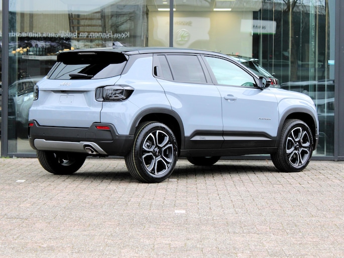 Met zijn inventieve techniek is de hybride Jeep Avenger tegelijk comfortabel en zuinig met brandstof. Dit is een splinternieuwe auto, die nu uit voorraad leverbaar is. De elektromotor zorgt voor snel en traploos optrekken bij ieder stoplicht. Een van de vele voordelen van deze hybride auto. Ga samen met uw bijrijder lekker zitten in de verwarmbare voorstoelen. Een praktische extra is de elektrisch bedienbare achterklep die opent en sluit met een druk op de knop. Ook 18 inch lichtmetalen velgen, Full LED koplampen, extra getint glas, in delen neerklapbare achterbank en LED-achterlichten horen tot de voorzieningen op deze auto.