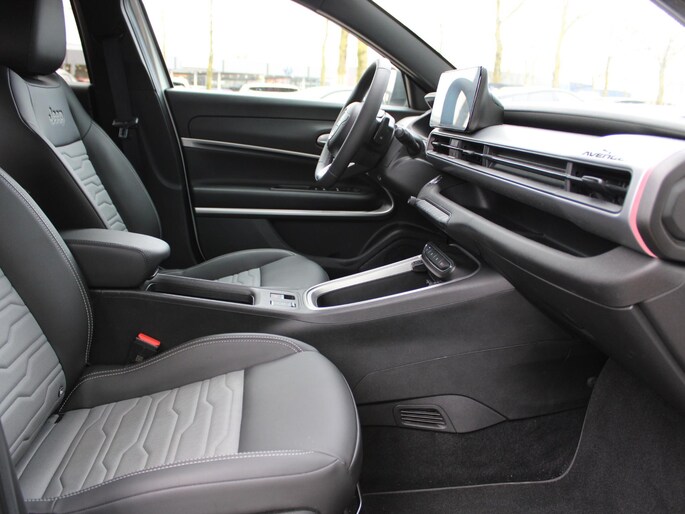 Met deze Jeep Avenger kunt u weer jaren vooruit, de kilometerteller staat op 9798. Deze hybride auto heeft een combinatie van een verbrandingsmotor en een elektromotor. Op koude dagen voelt u zich snel behaaglijk op de verwarmbare stoelen. Een praktische extra is de elektrisch bedienbare achterklep die opent en sluit met een druk op de knop. Ook 17 inch lichtmetalen velgen, Full LED koplampen, extra getint glas, in delen neerklapbare achterbank en LED-achterlichten zijn aan boord.