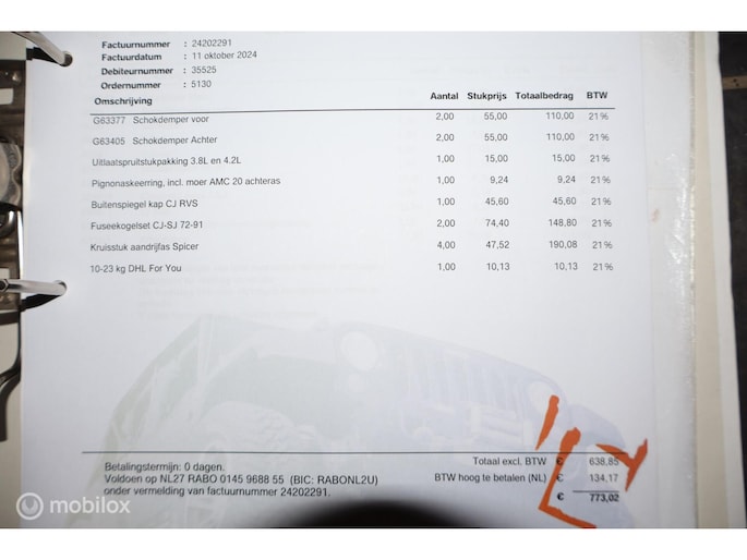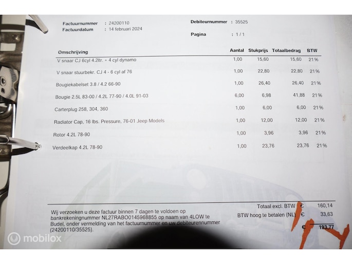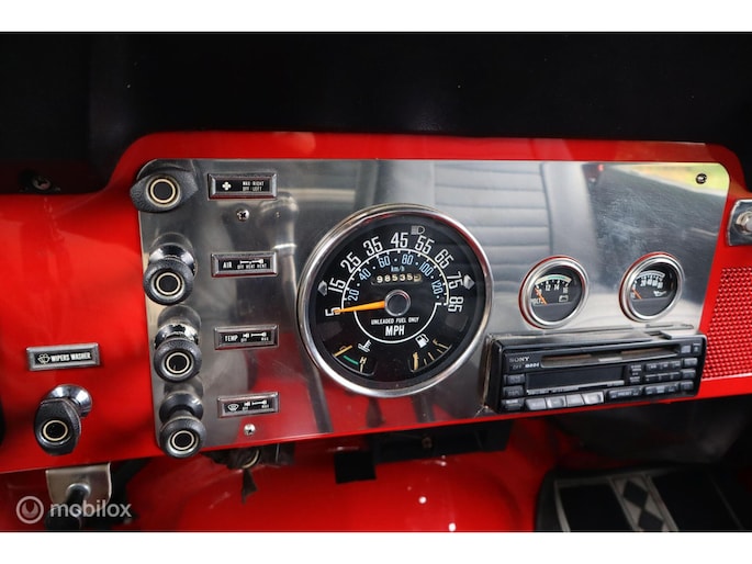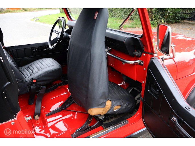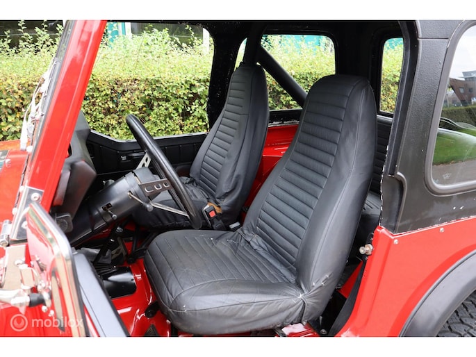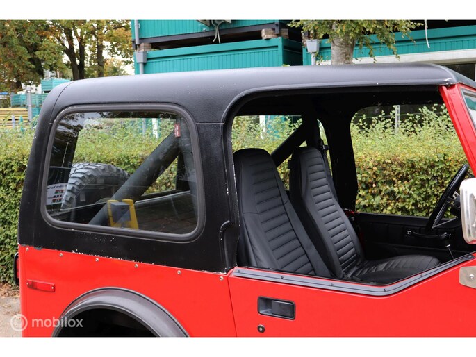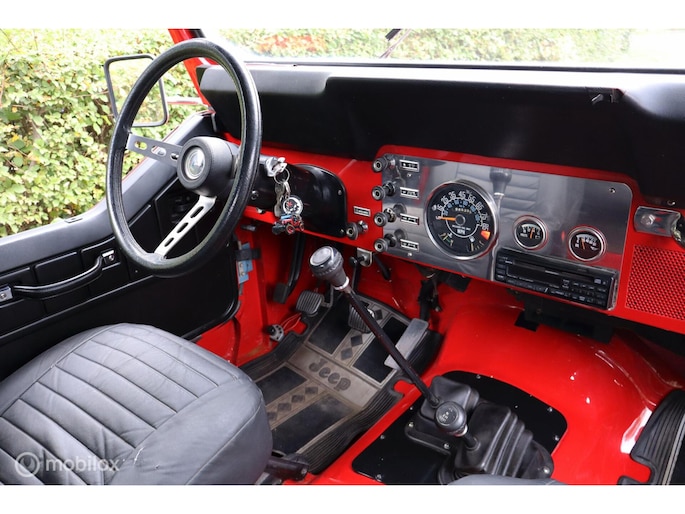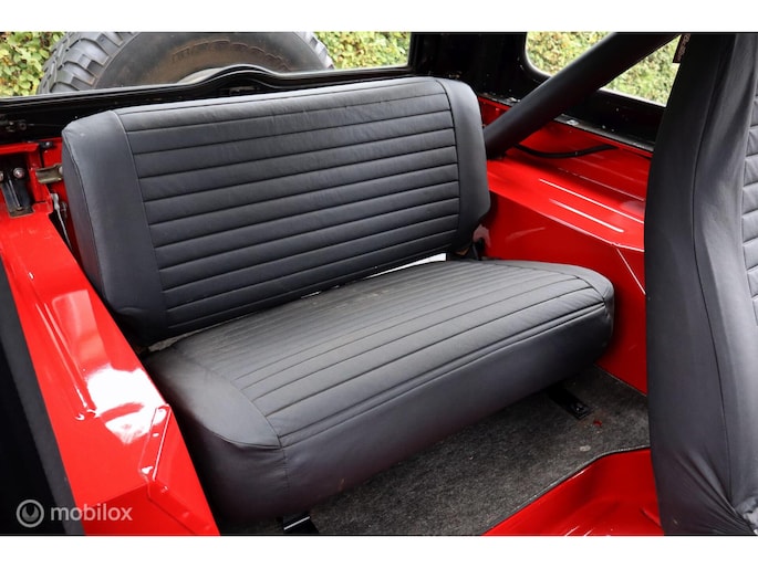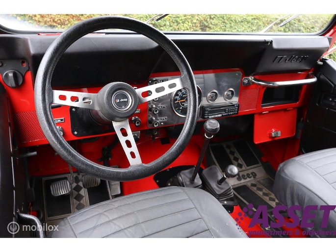 CJ-7 Renegade oldtimer uit 1985, dus blijvend belastingvrij! Liefhebbersauto met 98.535 miles in heel goed verzorgde conditie. De complete historie vanaf import in 1996 is voorhanden, de laatste eigenaar heeft de auto sinds 2002 gehad. De laatste jaren is er voor tienduizenden euro's aan de Jeep verspijkerd en de technische conditie is dan ook bijzonder goed. Met de 4.2 liter zescilinder en T176 versnellingsbak is hij oer- en oersterk. De rijbeleving is fantastisch, hij spoort ook goed, niet vanzelfsprekend voor een CJ. In 2002 is de auto optisch gerestaureerd, en in 2010 is de motor gereviseerd (ca. 3.000 km geleden). De stoelen zijn in bruin leer uitgevoerd, zonder beschadigingen, met daarover zwarte stoelhoezen. Daarnaast komt de auto met een klein pakhuis aan extra onderdelen en accessoires. Dit hebben we niet allemaal op de foto's gezet, maar hieronder vindt u een opsomming van de belangrijkste eigenschappen. Toch nog vragen? Neem contact op en we helpen u verder!
