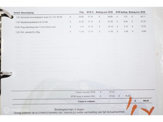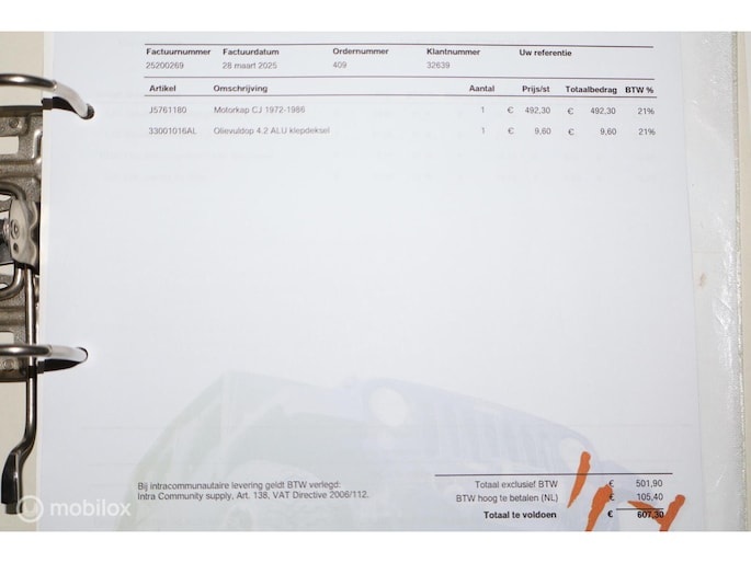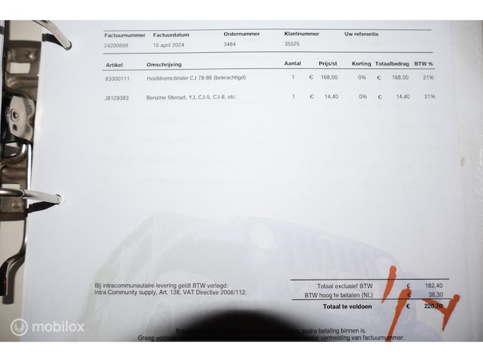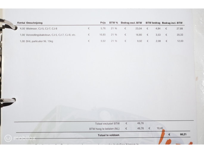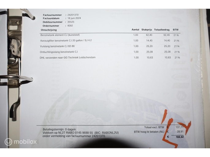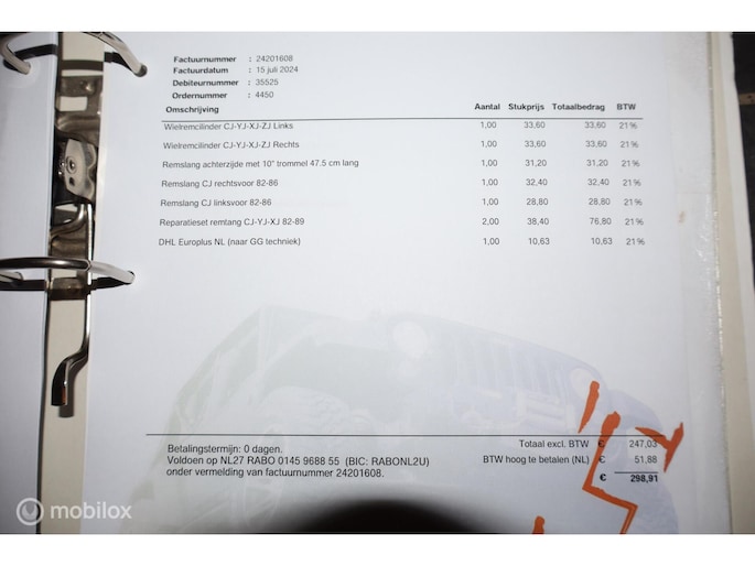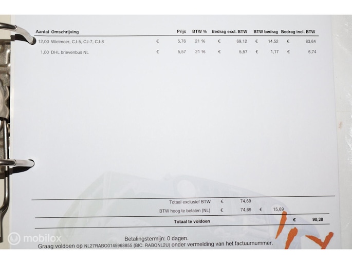 - Velgen met banden voor de APK bijgevoegd (APK station vindt de huidige wielen niet te ver uitsteken)