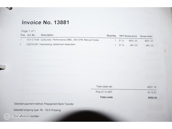 - Originele radiateur meegeleverd met een heel klein lekje (purist zal deze wellicht liever repareren en monteren)