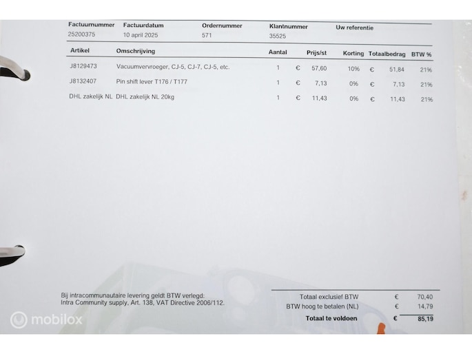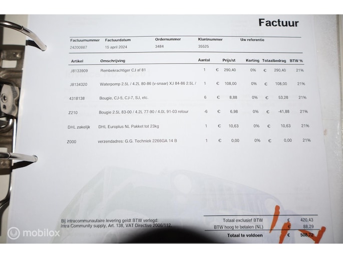 - Onderhoudshistorie aanwezig: Ja