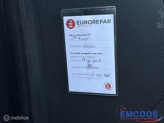 De laatste servicebeurt werd uitgevoerd op 17-09-2025 bij een kilometerstand van 173.130 km.