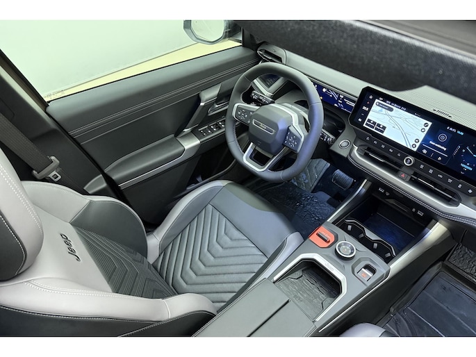 Een cockpit, een informatiecentrum... Wat is de cabine eigenlijk niet? Dankzij het digitale dashboard bent u van alles op de hoogte. De functie van deze 360 graden camera is vooral nuttig in smalle straatjes waar het zicht beperkt is. Via uw smartphone en Connected Services checkt u eenvoudig de belangrijke functies van de auto, overal en altijd. Smakelijke subs en knisperend hoog: het high performance audiosysteem geeft elke frequentie een kwaliteitsbehandeling voor akoestisch genieten onderweg. Klik de smartphone in de houder en de draadloze telefoonlader zorgt voor een volle accu. Ook is de Jeep uitgerust met: navigatiesysteem, automatische airconditioning, keyless entry en automatisch dimmende binnenspiegel.