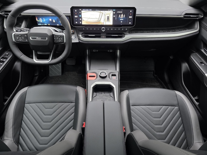 Alle benodigde informatie helder in beeld: het digitale dashboard is een geweldige rijhulp. Met de hulp van vier camera's, biedt de 360 graden camera op deze auto een panoramisch zicht, wat bijzonder nuttig is bij het parkeren en manoeuvreren. Uw smartphone wordt een dashboard, met alle functies in beeld. Dankzij Connected Services en de speciale app. Sublaag en tophoog... en alles daartussenin! Het high performance audiosysteem kan elke frequentie moeiteloos aan. Deze Jeep Compass is een complete auto anno nu, en dat merk je. Bijvoorbeeld door de aanwezige draadloze oplaadmogelijkheid voor telefoons. Ook navigatiesysteem, automatische airconditioning, keyless entry en automatisch dimmende binnenspiegel horen tot de voorzieningen op deze auto.