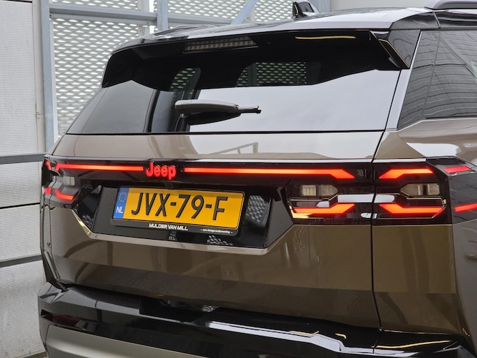 Reed u eerder elektrisch of maakt u voor het eerst kennis met deze techniek? In de Jeep Compass voelt u zich thuis vanaf het moment dat u instapt. Wat een rijervaring, die elektromotor. Forse actieradius, nul uitstoot en heerlijk pittig rijgedrag! Op de teller van deze auto staat slechts 1987 kilometer. Een heerlijk zonnetje, of indrukwekkende wolkenpartijen? Bekijk ze onbelemmerd door het elektrisch bediende glazen panorama dak. Met één klik open en dicht, net als de elektrisch bedienbare achterklep. De verwarmbare voorstoelen zijn voorzien van een massagefunctie, een weldaad voor rug en schouders in elk seizoen. Als de 'r' in de maand zit, komt zo'n verwarmd stuurwiel als geroepen! De verlichting van de koplampen geeft het gevoel dat het altijd dag is. De slimme matrix LED-technologie past zich aan bij tegenliggers, zonder verlies van lichtkwaliteit. Bij de zeer complete uitrusting van deze auto behoren ook 20 inch lichtmetalen velgen, extra getint glas, verwarmde ruitensproeiers en snelheidsafhankelijke stuurbekrachtiging.