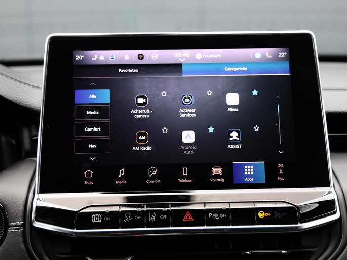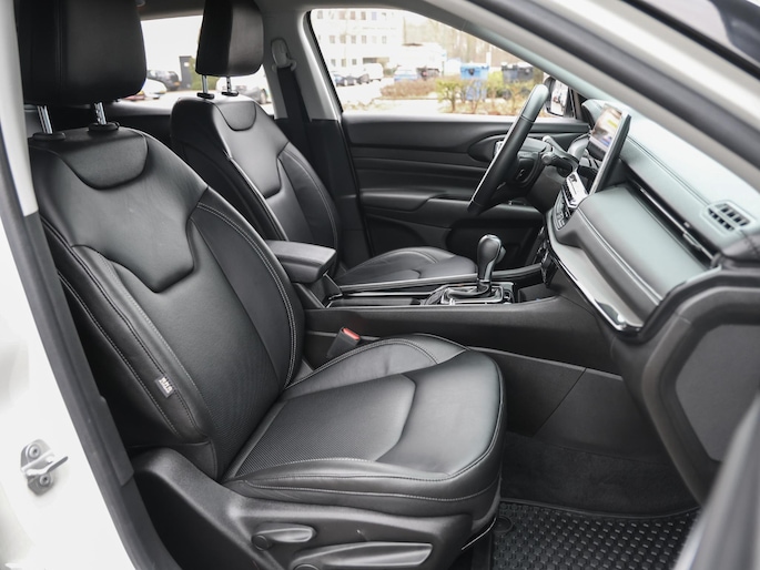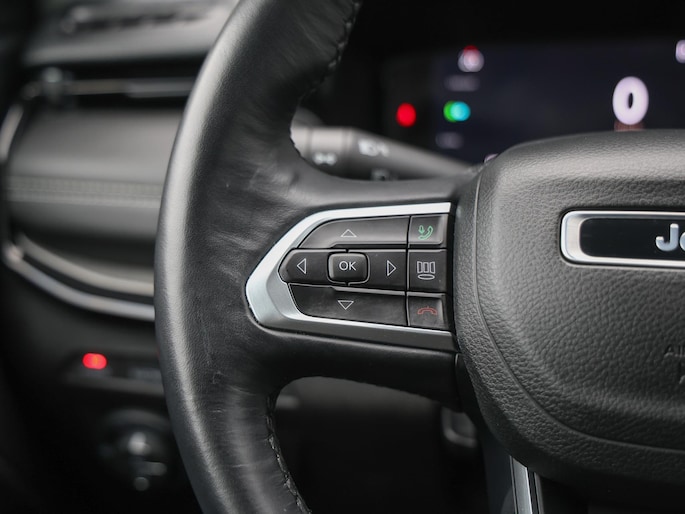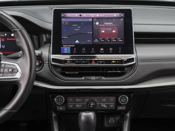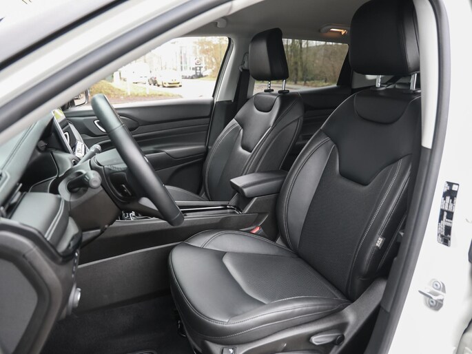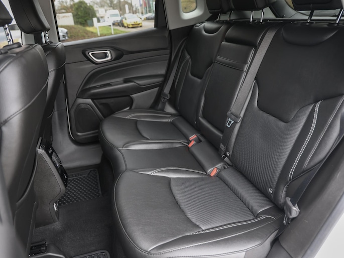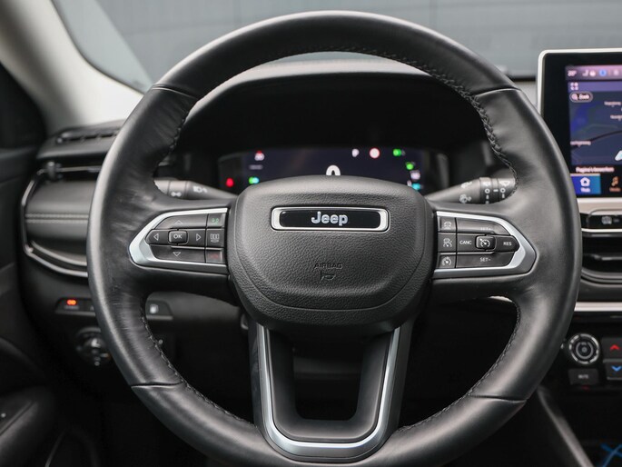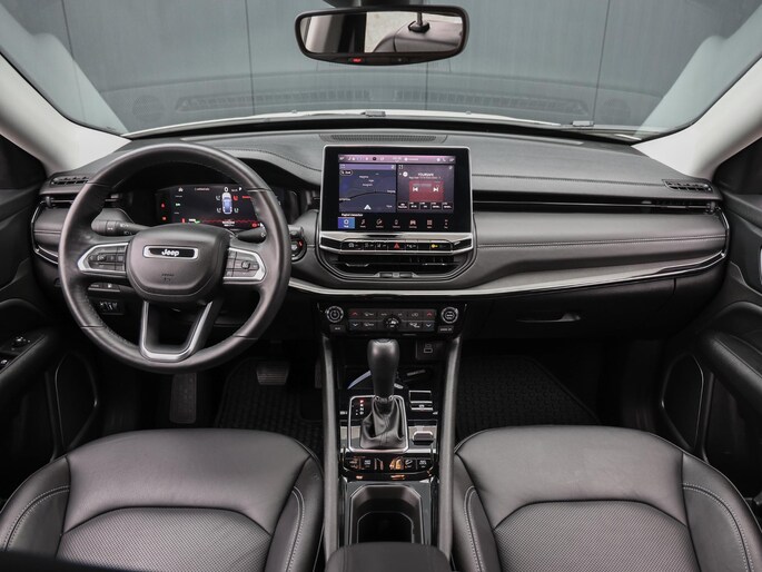 Een cockpit, een informatiecentrum... Wat is de cabine eigenlijk niet? Dankzij het digitale dashboard bent u van alles op de hoogte. Hoeveel ruimte heeft u nog bij het inparkeren? De achteruitrijcamera brengt helder in beeld wat zich achter de auto bevindt en geeft een geluidssignaal. Adaptive cruise control is veilig en comfortabel. De snelheidsregelaar houdt automatisch afstand tot het voertuig dat voor u rijdt. Dankzij Connected Services houdt u de auto nog gemakkelijker in topconditie. Elke dag. Het audiosysteem met DAB-ontvangst en het full map navigatiesysteem bedient u veilig met knoppen op het stuurwiel of met gesproken commando's. Deze Jeep is voorzien van automatische airconditioning, draadloos opladen, regensensor, keyless entry, automatisch dimmende binnenspiegel en lederen stuur.