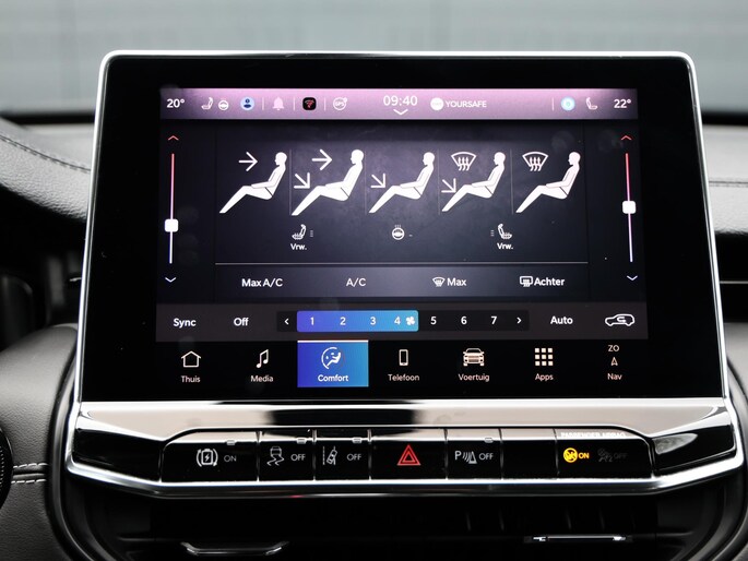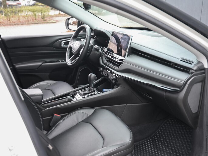 Tijdens de rit wordt u als bestuurder ondersteund door verschillende systemen die de weg en uw omgeving in de gaten houden. Verkeersbord-detectie herkent verkeersborden en toont deze op het instrumentarium van de auto. Indien u onbedoeld de rijstrook lijkt te verlaten, reageert het Lane-keeping systeem meteen en corrigeert. Een belangrijke bijdrage aan de veiligheid in deze auto is de vermoeidheidsherkenning, die waarneemt wanneer de bestuurder tekenen van vermoeidheid vertoont. In deze Jeep vinden we verder een hill hold functie, frontale botsbescherming en bandenspanningcontrolesysteem.