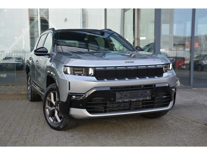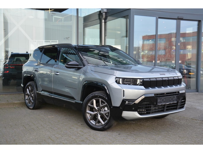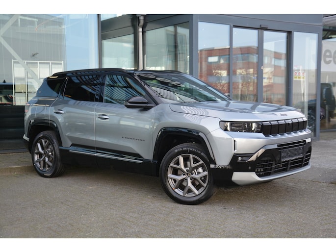 De nieuwe Jeep Compass nu in de showroom. Verkrijgbaar in zelfladende E-hybrid, plug in hybride en full electric. Dit betreft een First edition e-hybrid met alle mogelijke optie pakkettem;